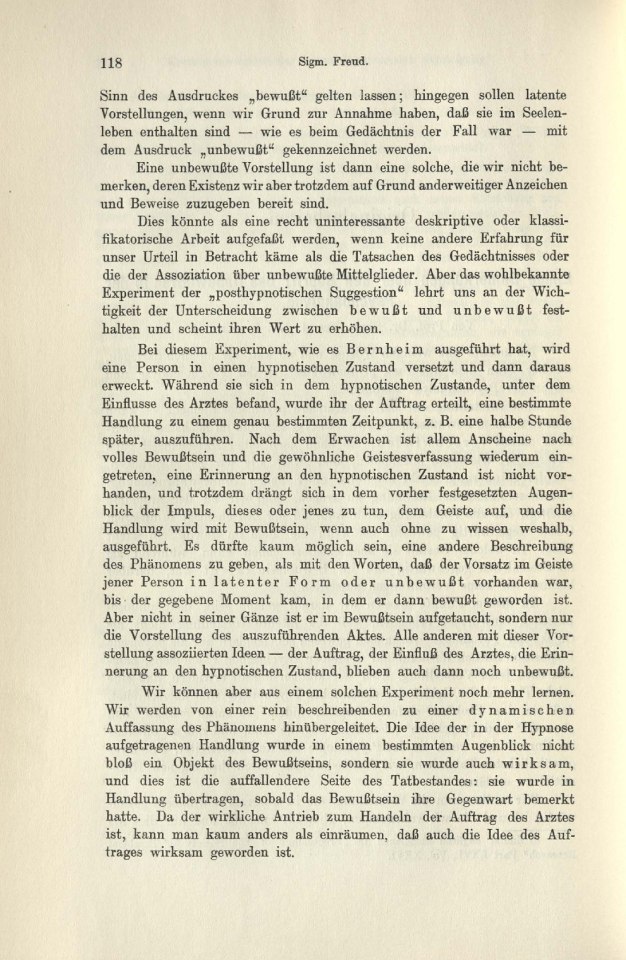 dem Ausdruck „unbewußt“ gekennzeichnet werden.Eine unbewußte Vorstellung ist dann eine solche, die wir nicht be-