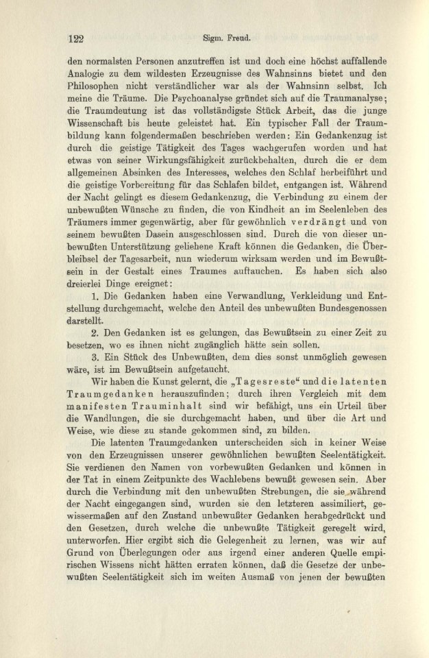 wäre, ist im Bewußtsein aufgetaucht.Wir haben die Kunst gelernt, die „Tagesreste* und die latenten