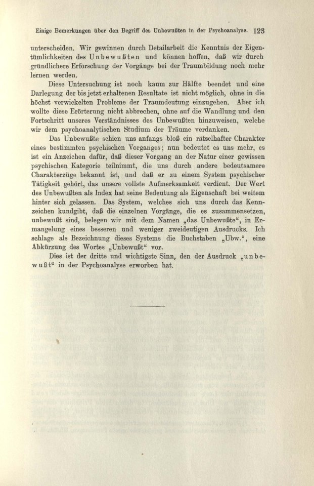 Einige Bemerkungen über den Begriff des UnbewuBten in der Psychoanalyse. 123