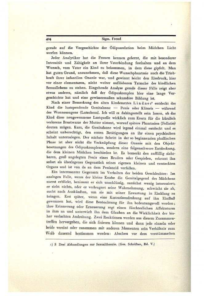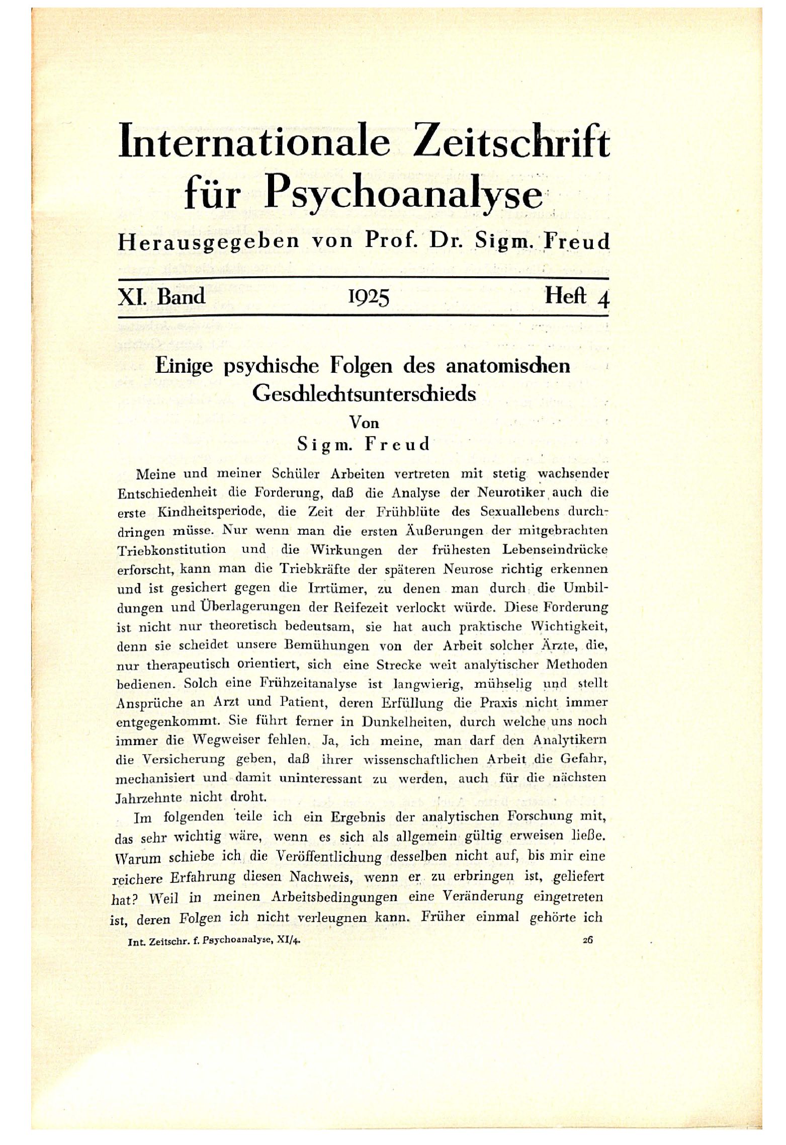 Sigm. Freud: Einige psychische Folgen des anatomischen Geschlechtsunterschieds