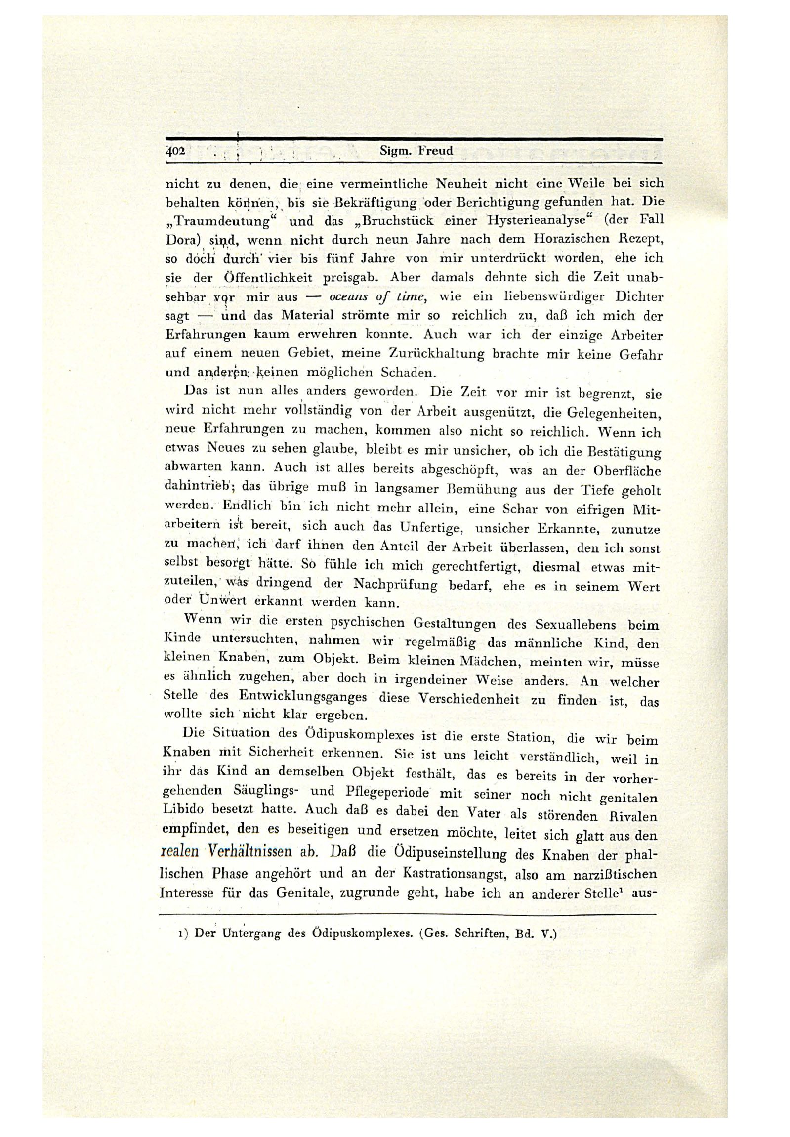 realen Verhältnissen ab. Daß die Ödipuseinstellung des Knaben der phal-