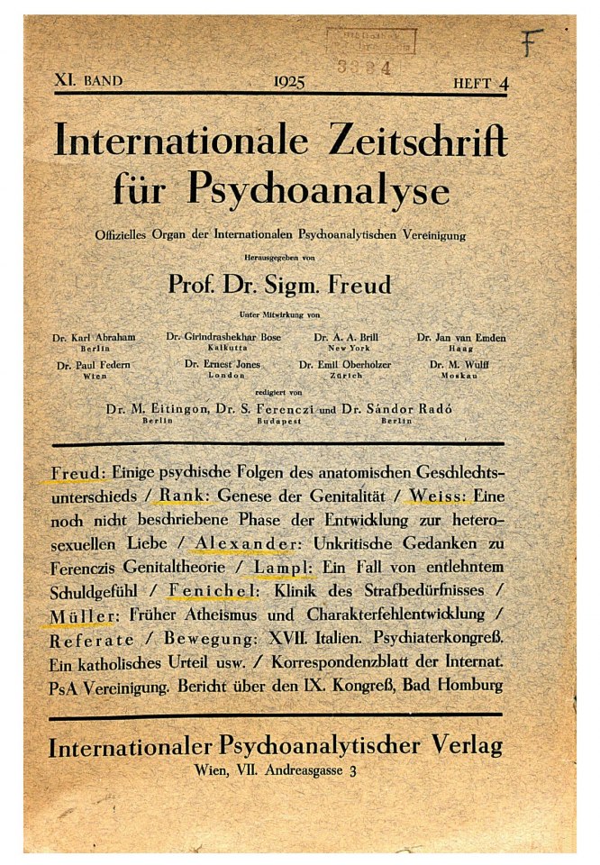 Einige psychische Folgen des anatomischen Geschlechtsunterschieds 1925-004/1925