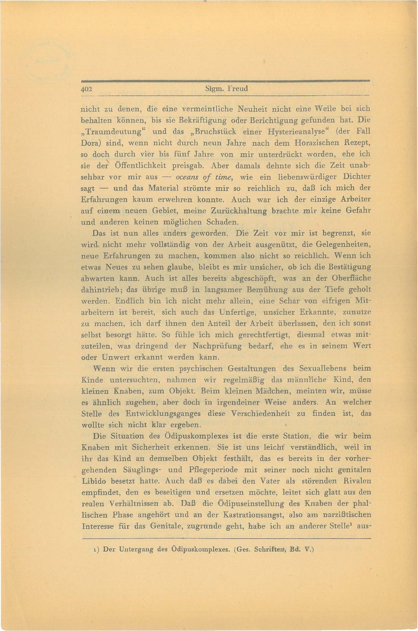 1) Der Untergang des Ödipuskomplexes. (Ges. Schriften, Bd. V.).
