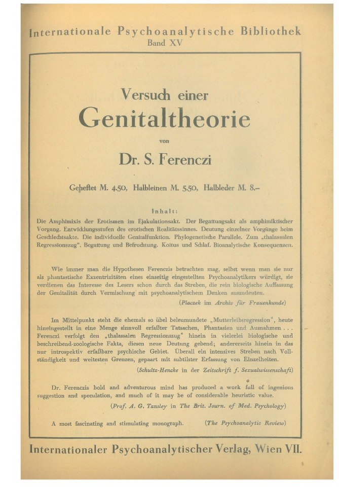 Ferenczi: Psychoanalyse von Sexualgewohnheiten