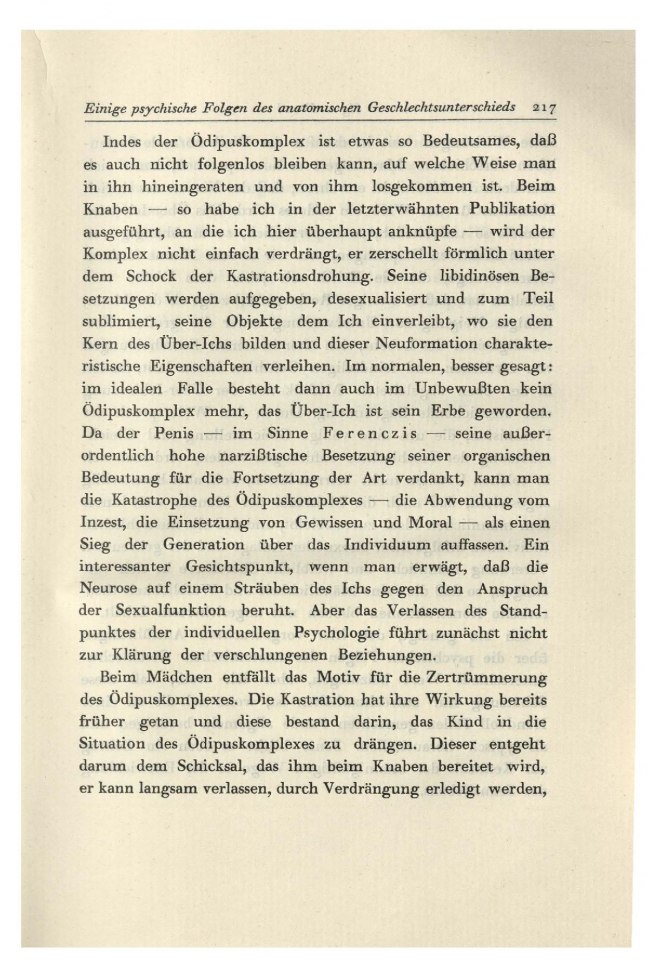 Einige psychische Folgen des anatomischen Geschlechtsunterschieds 217