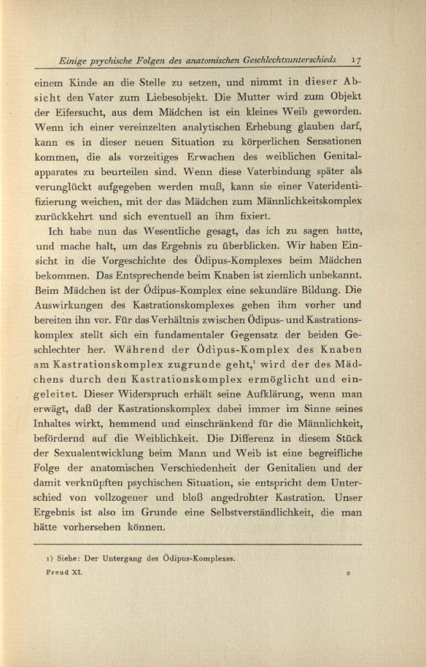 1) Der Untergang des Ödipuskomplexes. [Bd. V dieser Gesamtausgabe.]