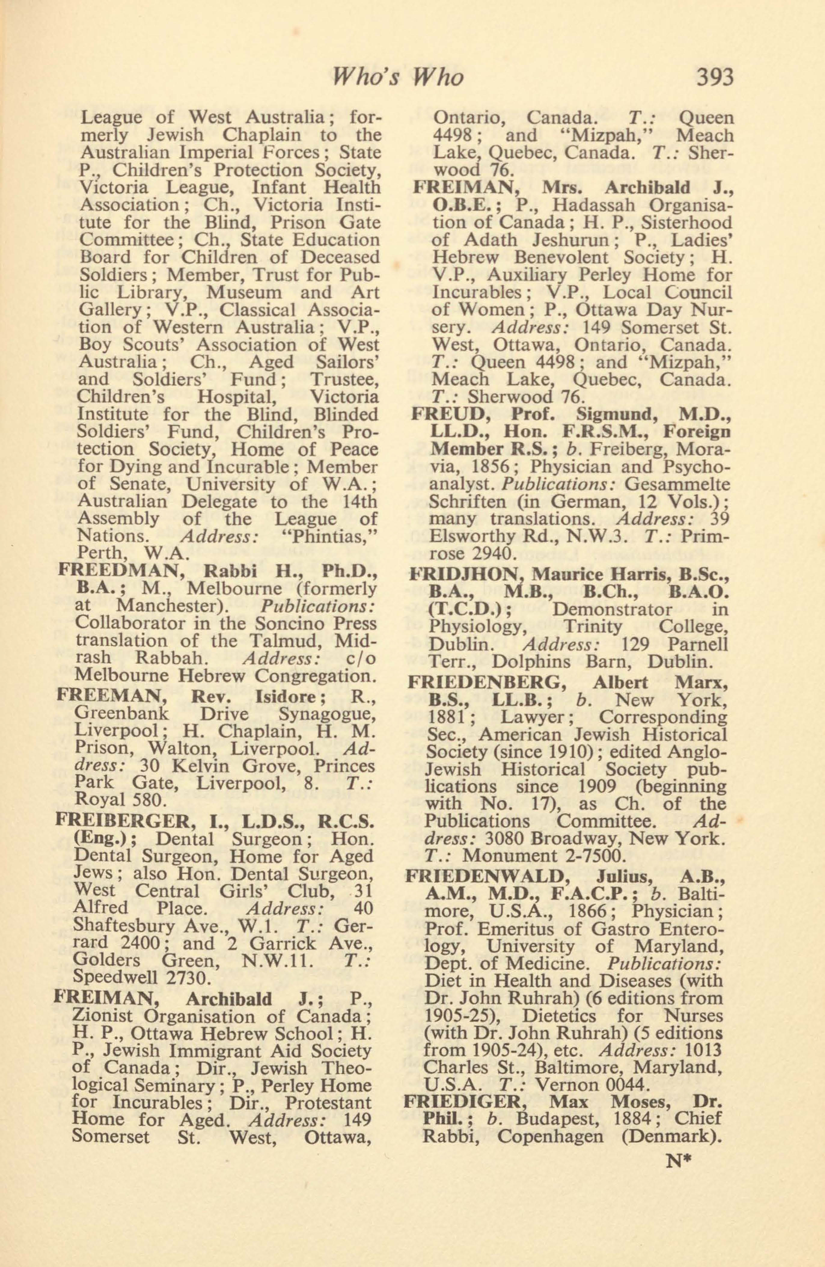 Freud, Prof. Sigmun, M.D., LL.D., Hon. F.R.S.M., Foreign Member R.S.