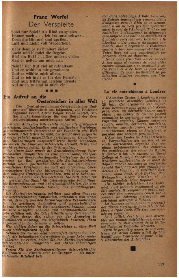 Freud, Sigmund 1939-051/1939 1939-06 Ein Aufruf an die Österreicher in aller Welt Nouvelles d'autriche, 1, 1939, № 6 et 7 219 Fertig Fertig Ganz fertig / zutreffend Fehlt Fehlt Ganz fertig / zutreffend EB