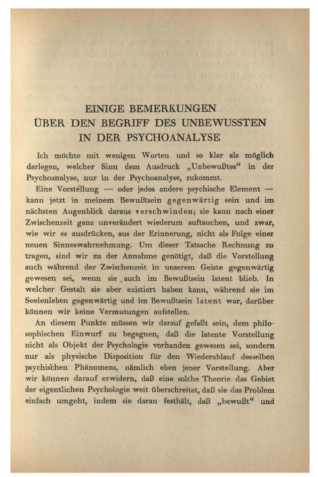 A Note on the Unconscius in Psycho-Analysis [Einige Bemerkungen über den Begriff des Unbewußten in der Psychoanalyse]