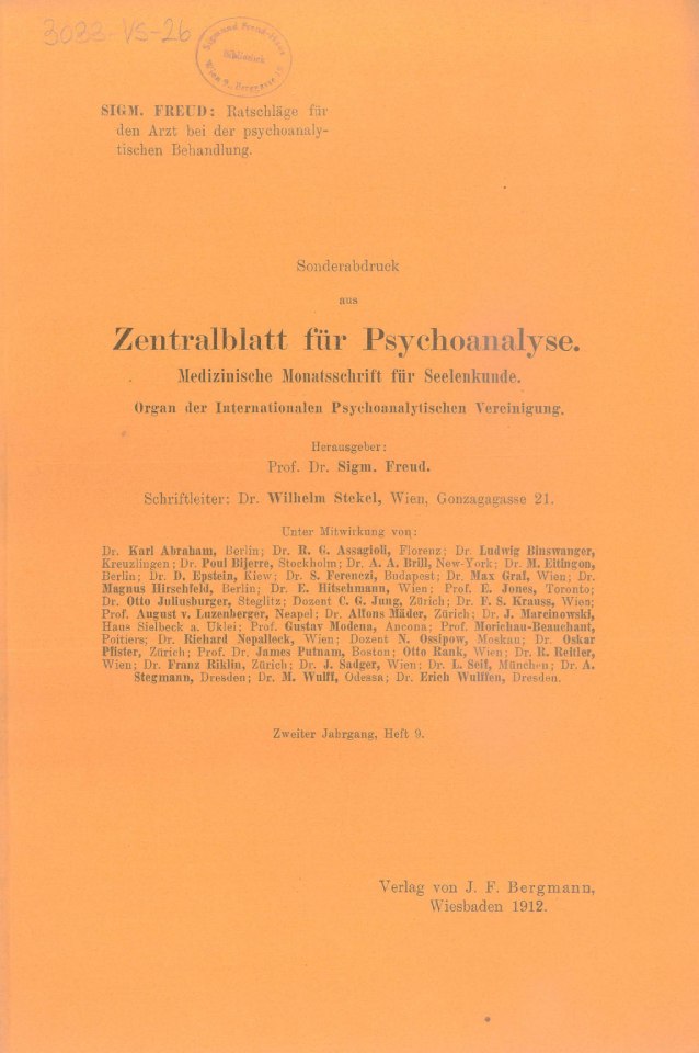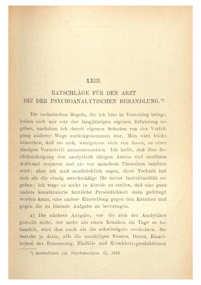 Freud, Sigmund 1912-003/1912.2 Ratschläge für den Arzt bei der psychoanalytischen Behandlung Separatum
