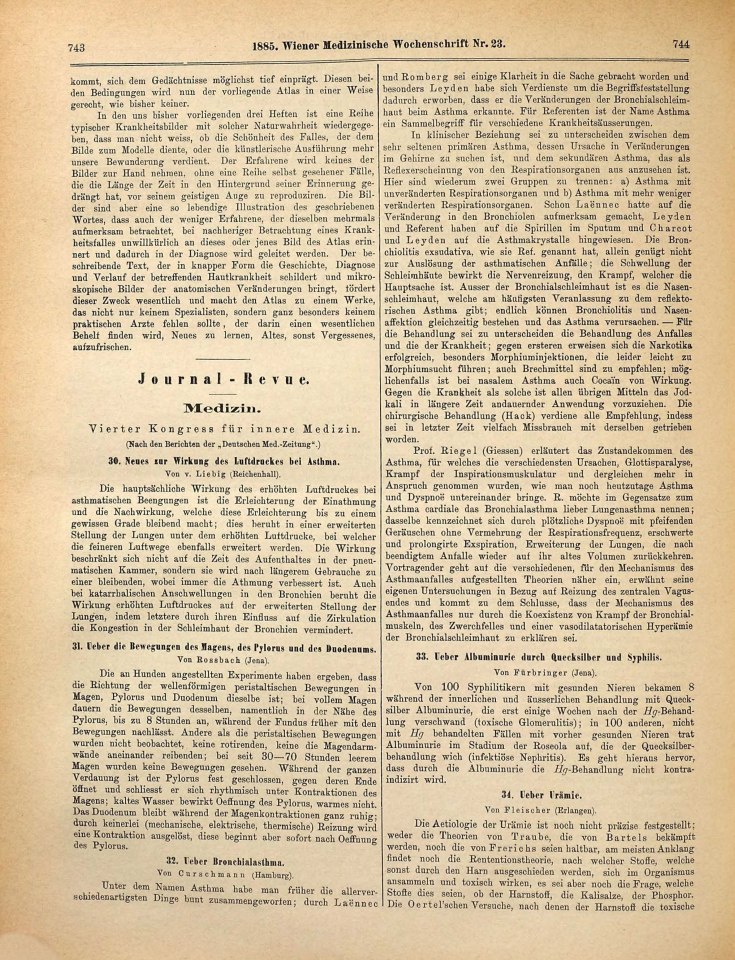 Freud, Sigmund 1885-237/1885 1885qq 1885-43 Rezension [unsigniert] von: Fürbringer ›Über Albuminurie durch Quecksilber und Syphilis‹ Wiener Medizinische Wochenschrift, 1885, 35, 23 744 Fertig Fertig Ganz fertig / zutreffend Fehlt Fehlt Ganz fertig / zutreffend EB