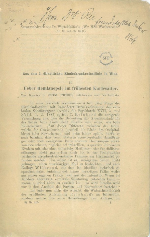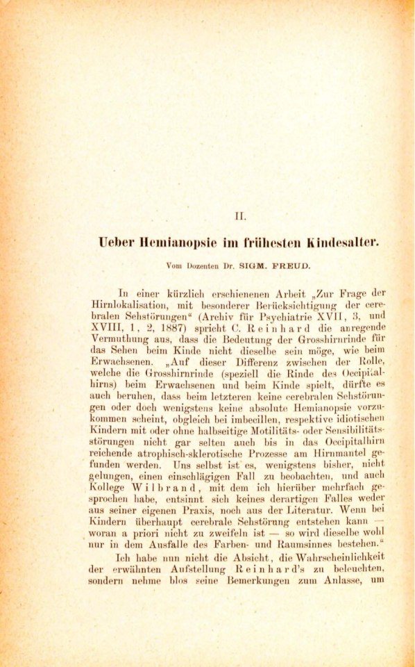 Freud, Sigmund | 1888-001/2015 | 1888-09 | Ueber Hemianopsie im frühesten Kindesalter | SFG 2 | 263, 265–280 | Fertig ✔ | Nicht erforderlich/ | Nicht erforderlich/ | Nicht erforderlich/ | Nicht erforderlich/ | Nicht erforderlich/ | ✔ | ✔ |