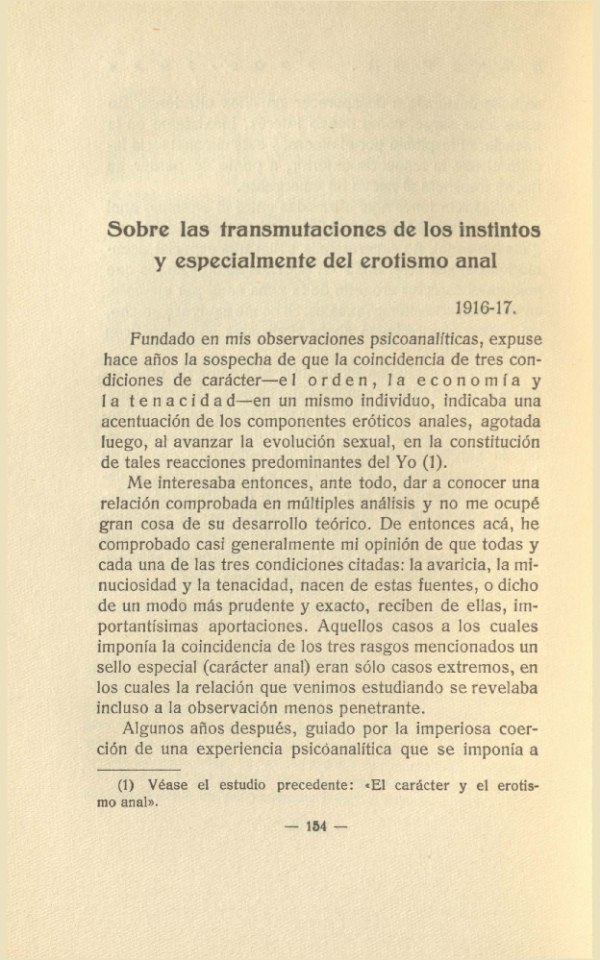 Sobre las transmutaciones de los instintos y especialmente del erotismo anal