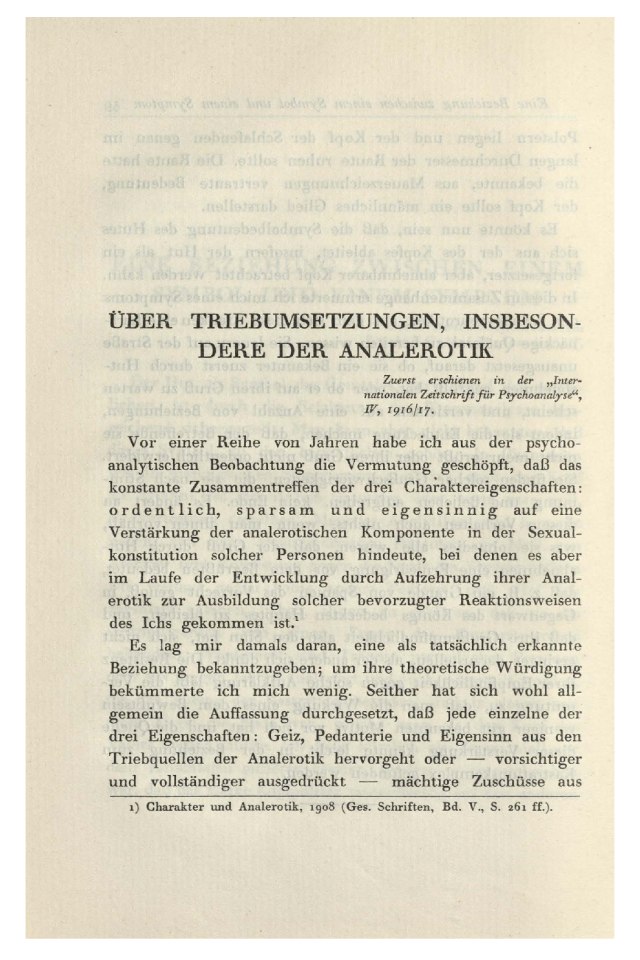 Freud, Sigmund | 1917-003/1917.2 | Über Triebumsetzungen, insbesondere der Analerotik | Separatum IZP 4, 1917, 3 |