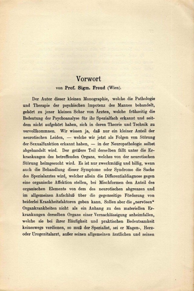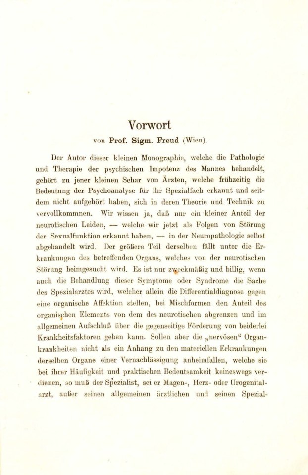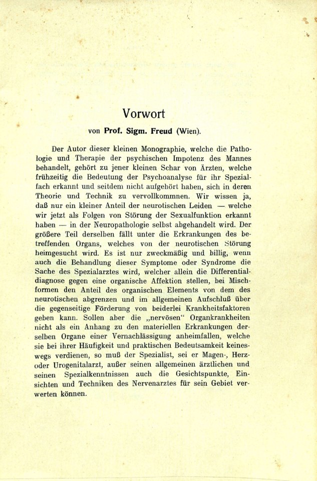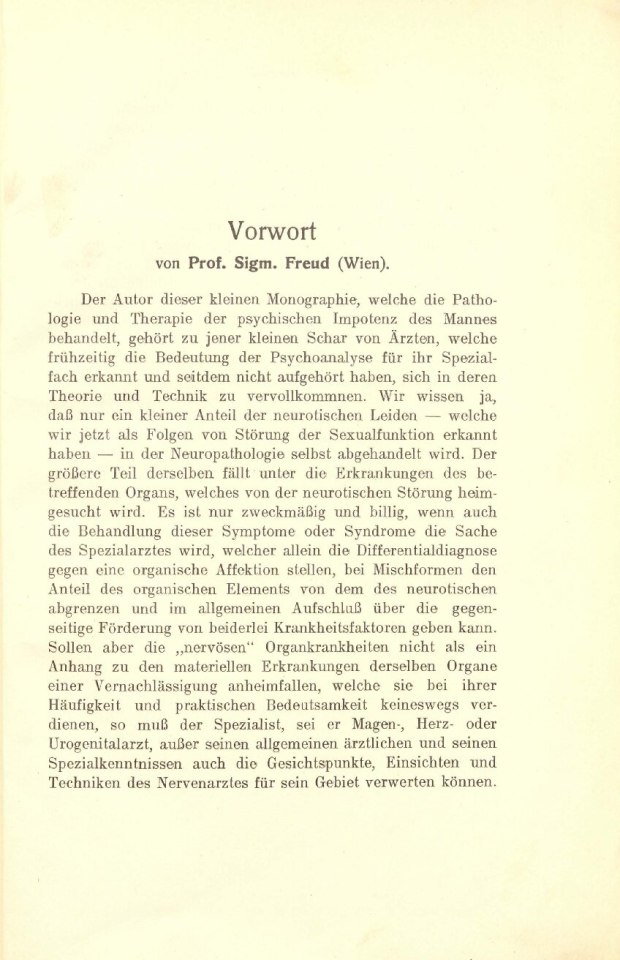 Vorwort [zu: Steiner, Maximilian ›Die psychischen Störungen der männlichen Potenz‹]