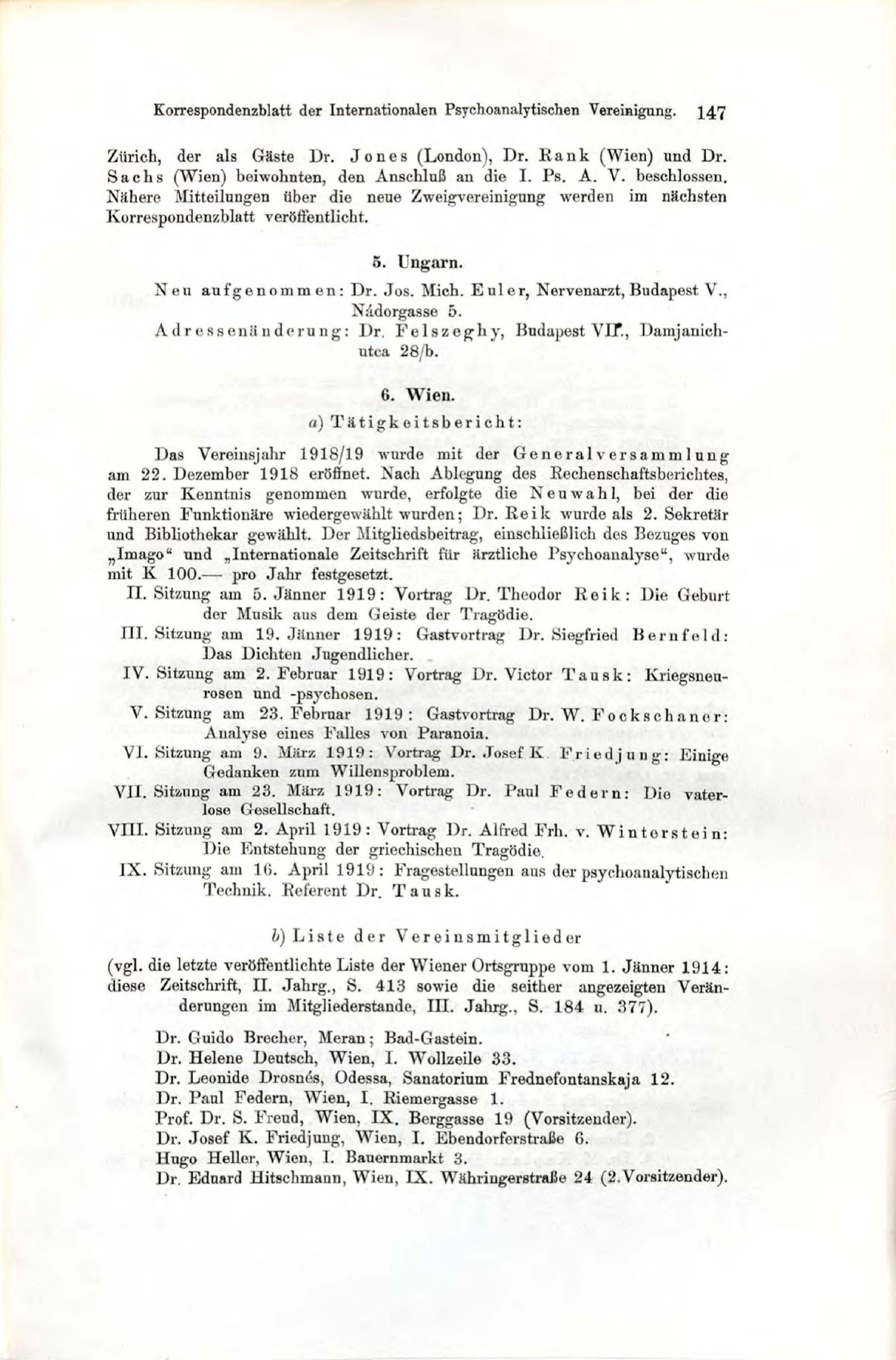IV. Sitzung am 2. Februar 1919: Vortrag Dr. Victor Tausk: Kriegsneurosen und -psychosen
