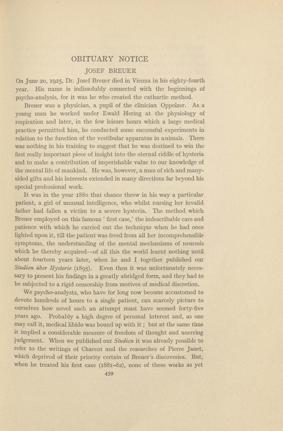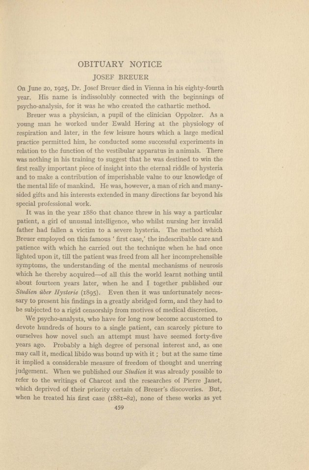 On June 20, 1925, Dr. Josef Breuer died in Vienna in his eighty-fourth