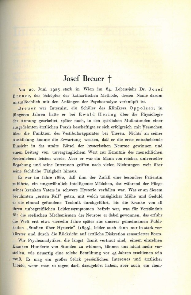 Breuer, der Schöpfer der kathartischen Methode, dessen Name darum