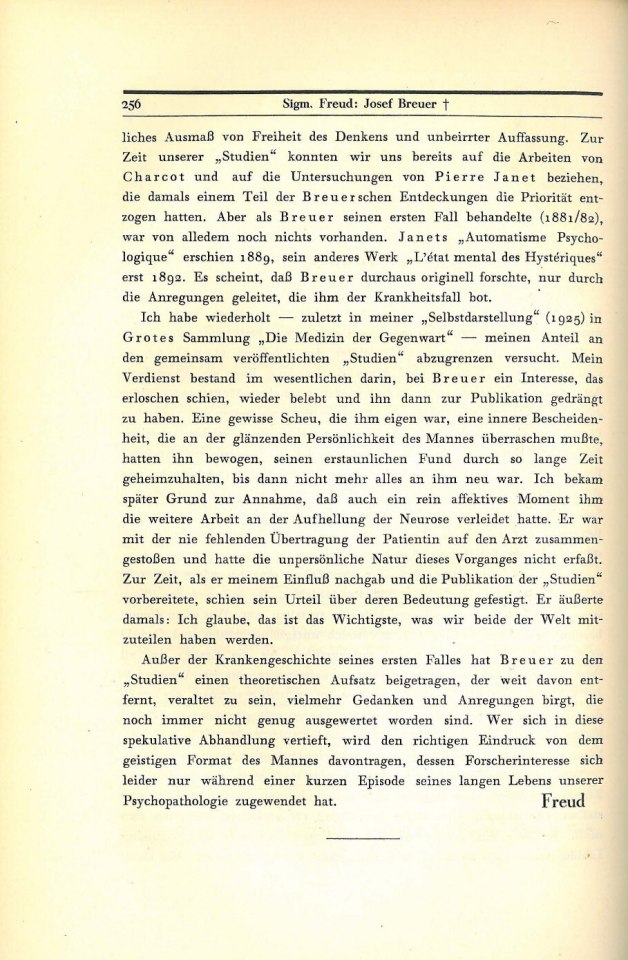 Außer der Krankengeschichte seines ersten Falles hat Breuer zu den
