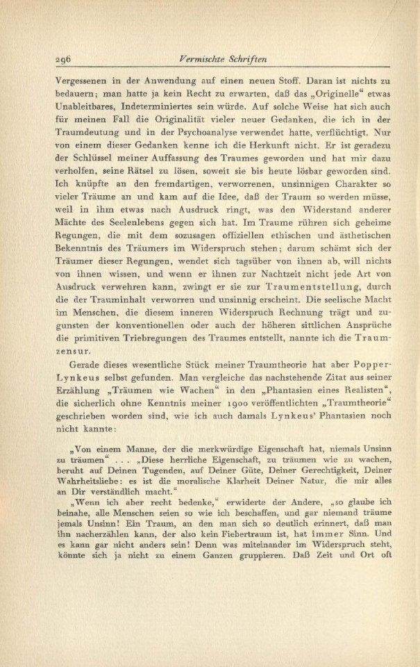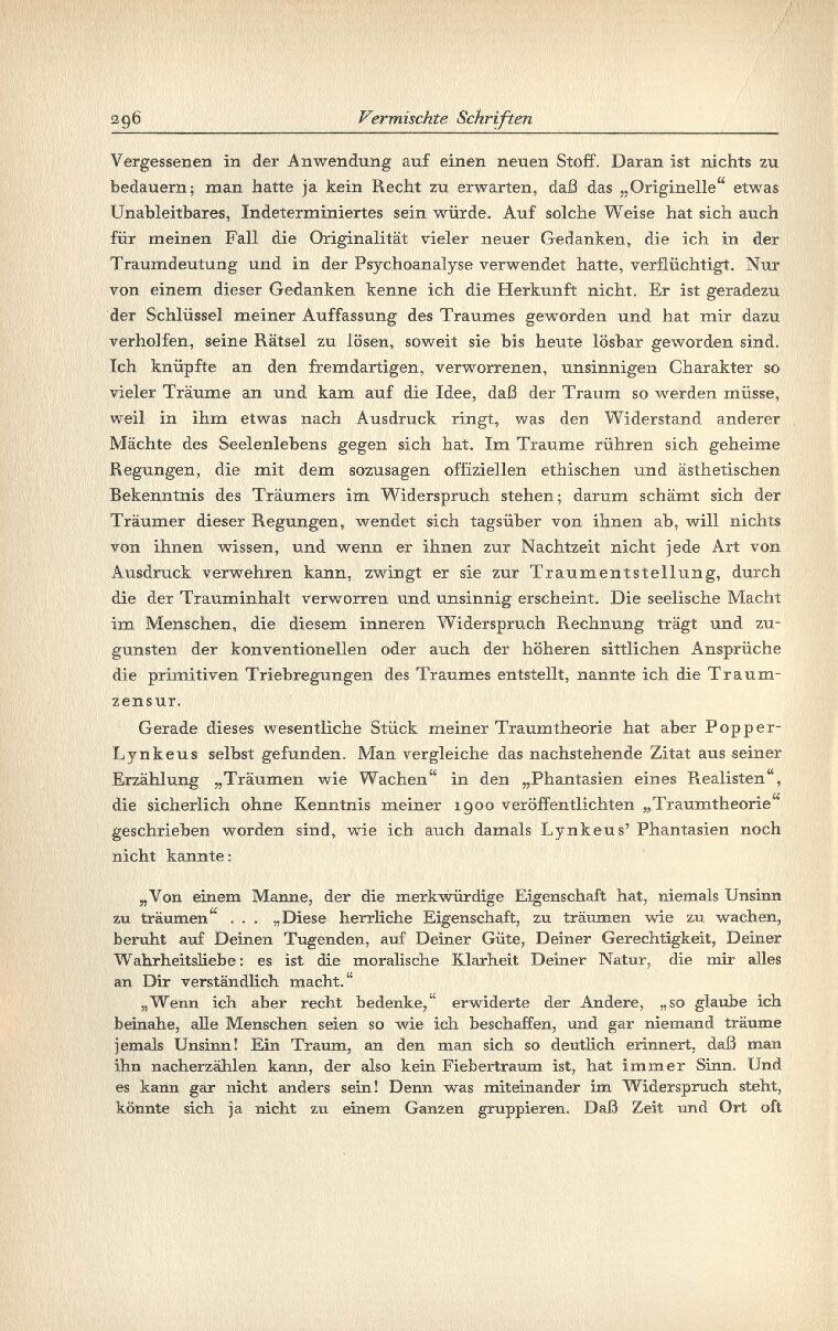 zensur.Gerade dieses wesentliche Stück meiner Traumtheorie hat aber Popper-