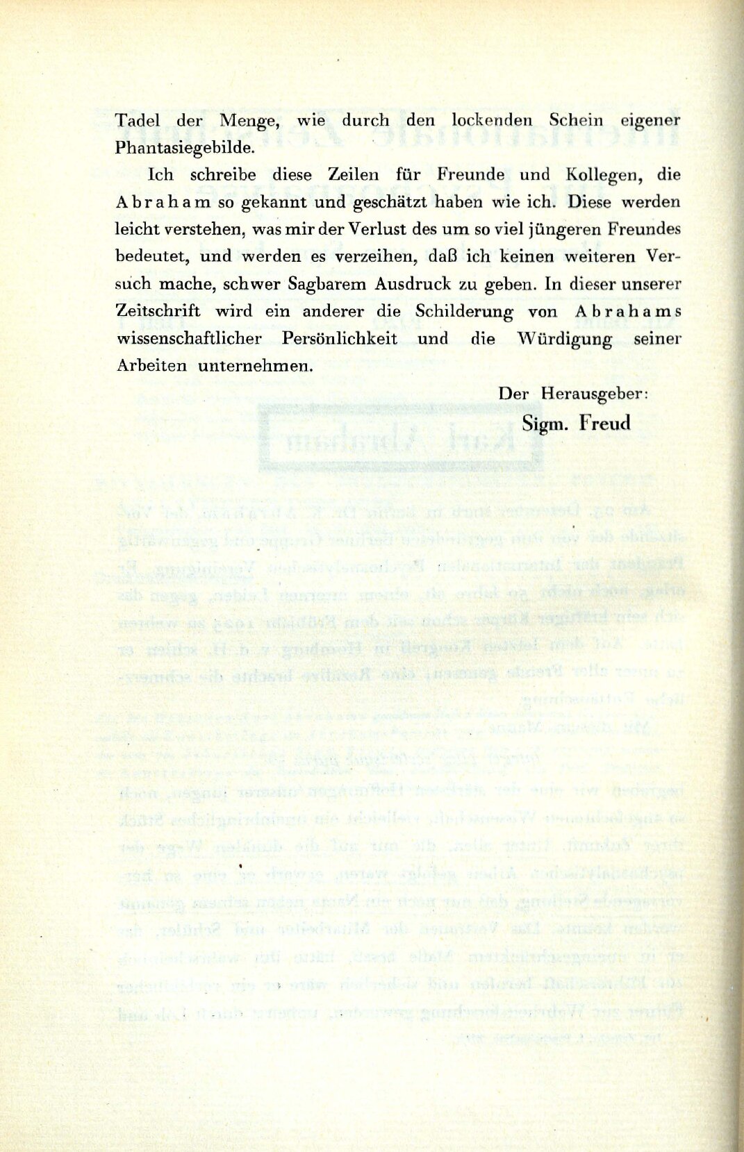 Am 25. Dezember starb in Berlin Dr. K. Abraham, der Vor-