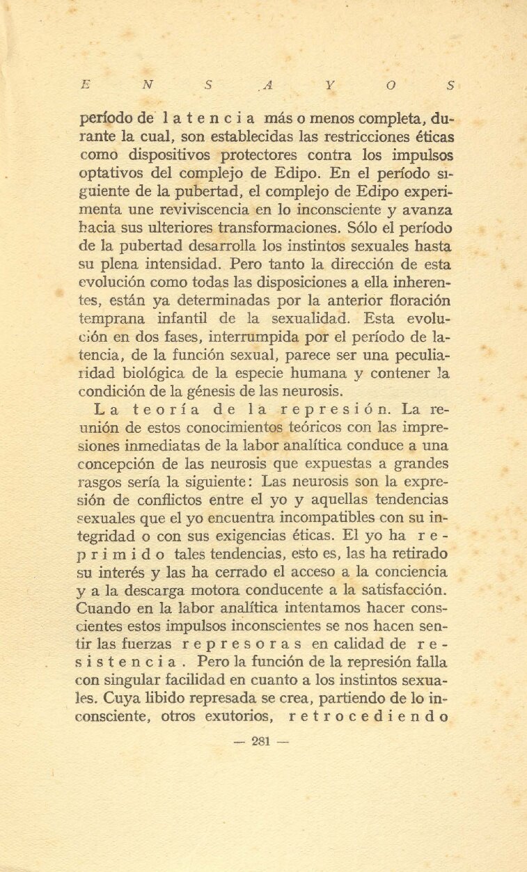sobre la esencia de la enigmätica neurosis. Pero