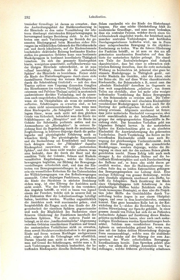 Sphäre“ der Hirnrinde zu bezeichnen. Ferner steht