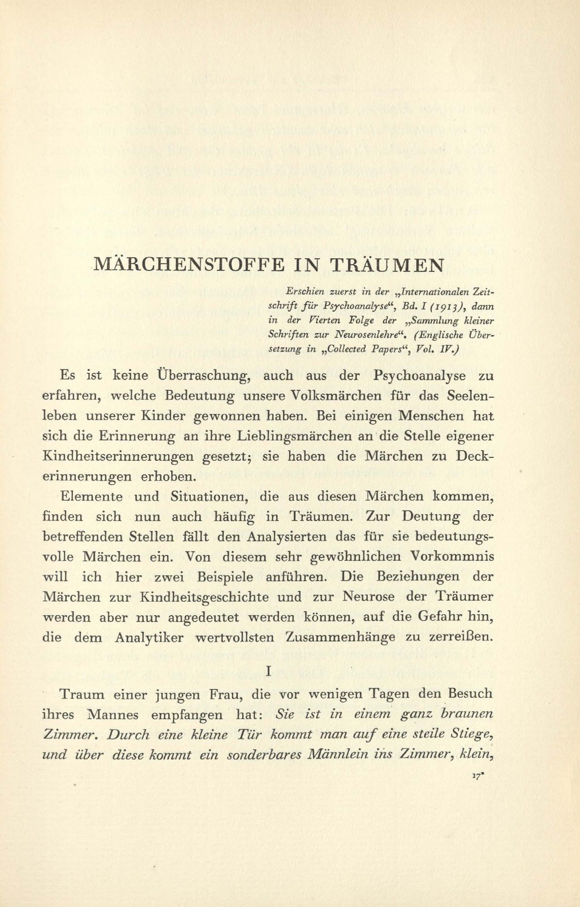 Märchen zur Kindheitsgeschichte und zur Neurose der Träumer