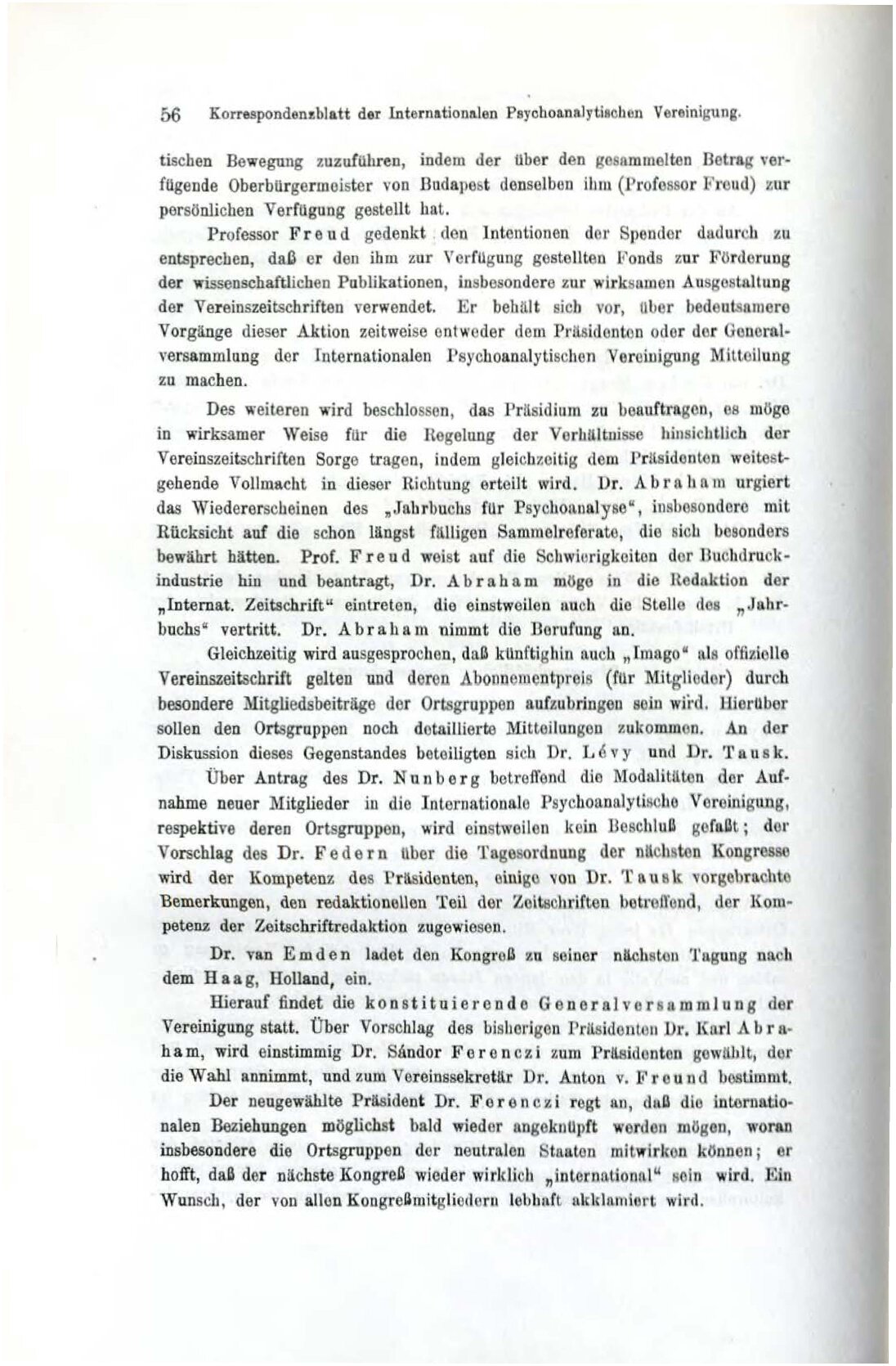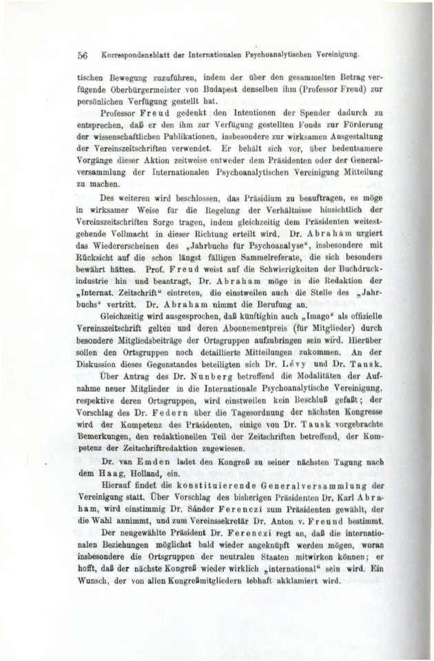 ham, wird einstimmig Dr. Sándor Ferenczi zum Präsidenten gewählt, für