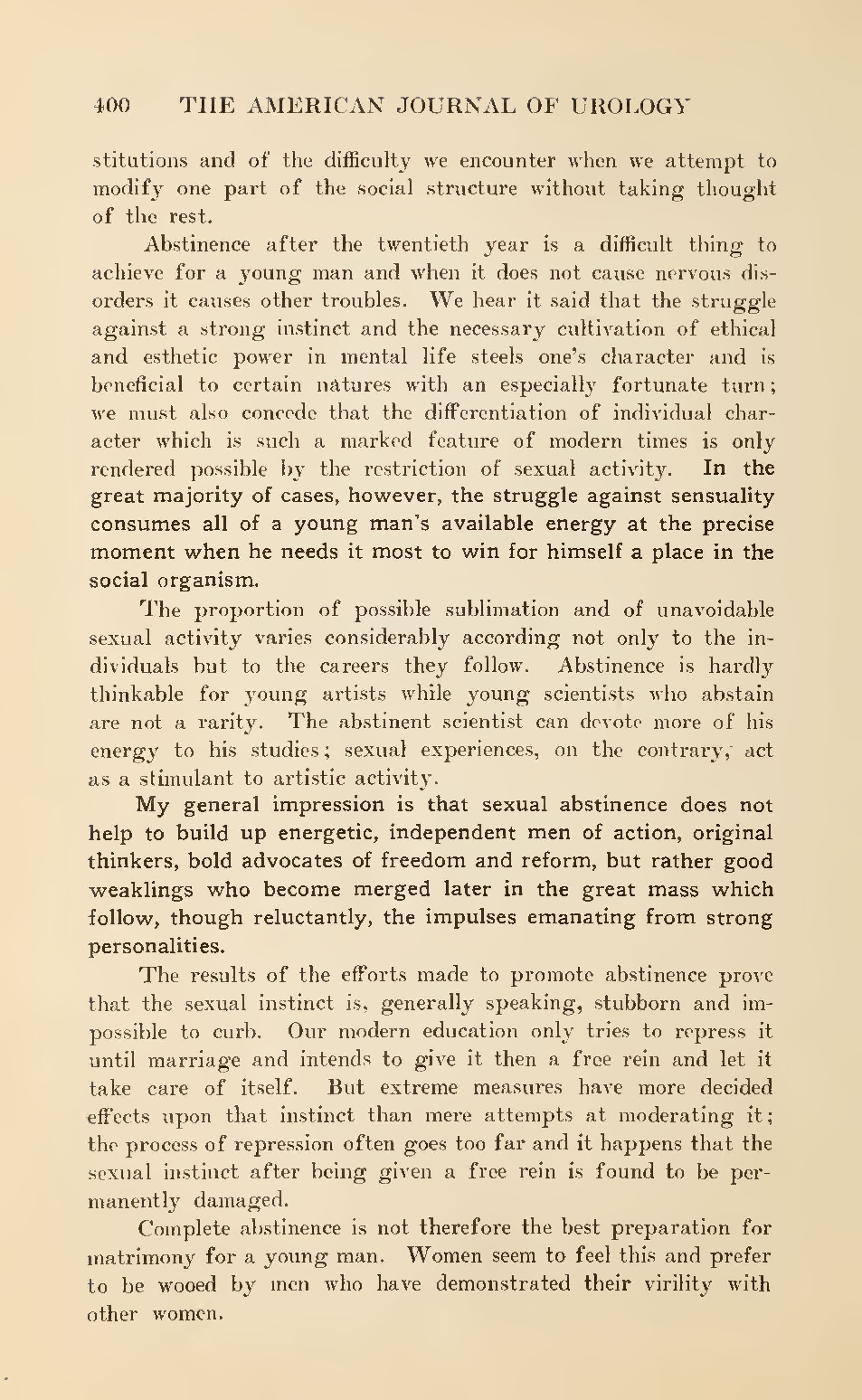 Translated for THE AMERICAN JOURNAL OF UROLOGY AND SEXOLOGY.