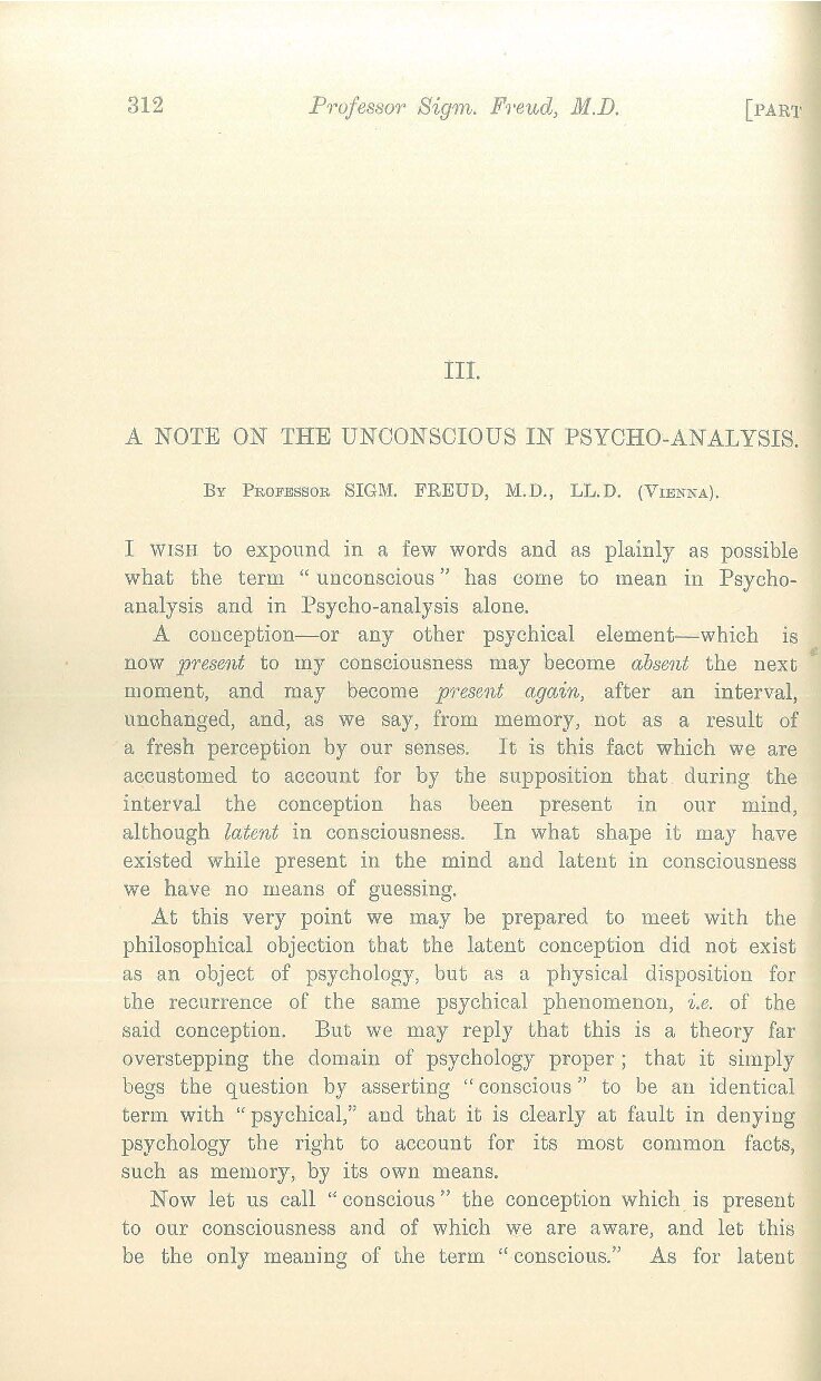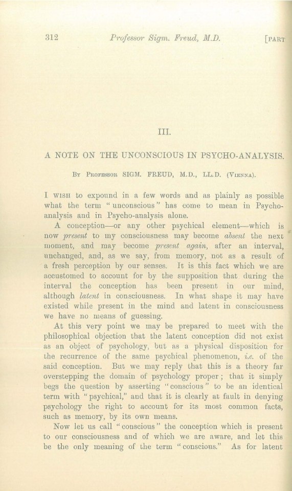 A NOTE ON THE UNCONSCIOUS IN PSYCHO-ANALYSIS.