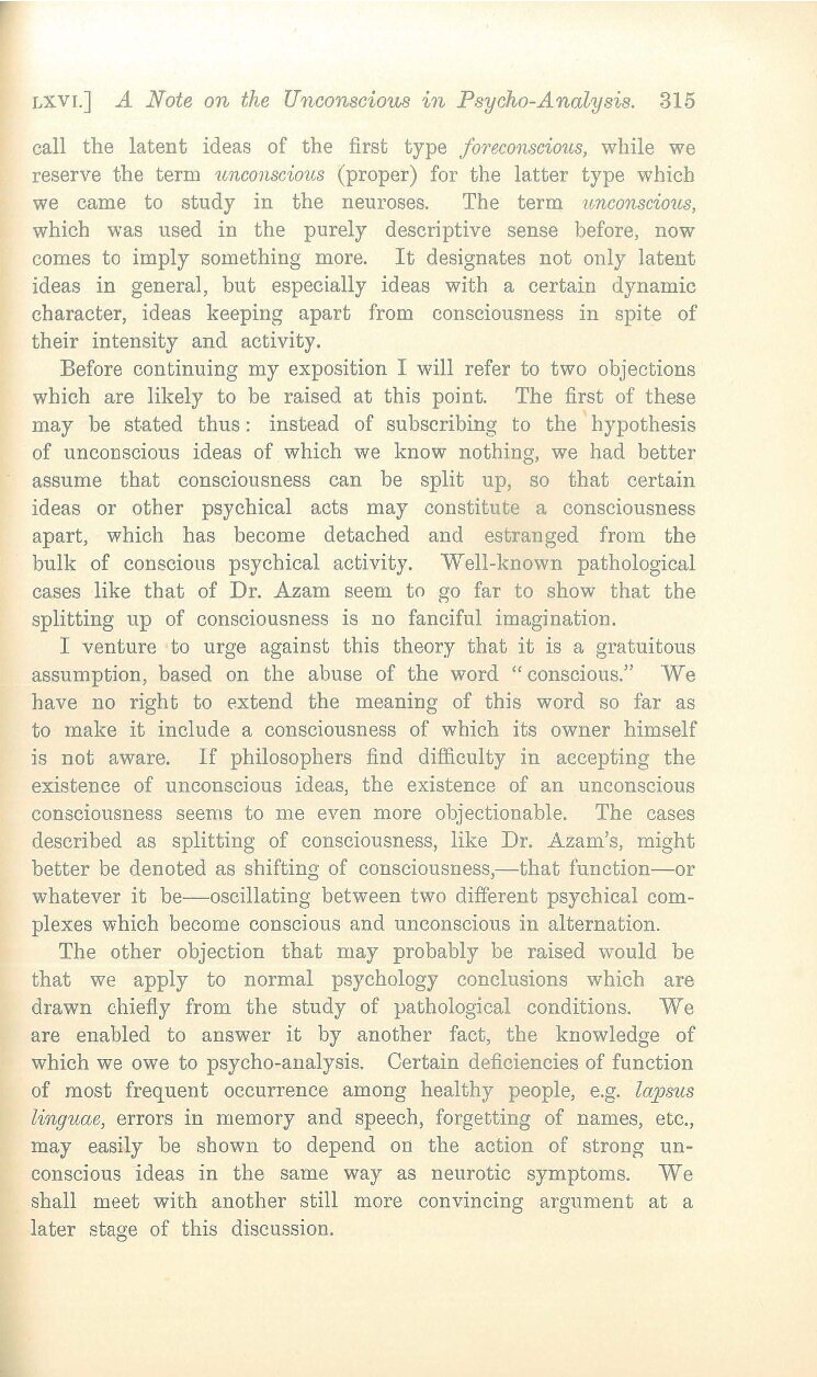 LXVI‚] : Note un l/za Uazconscioua [n R°yc/za—zhmlysis. 317