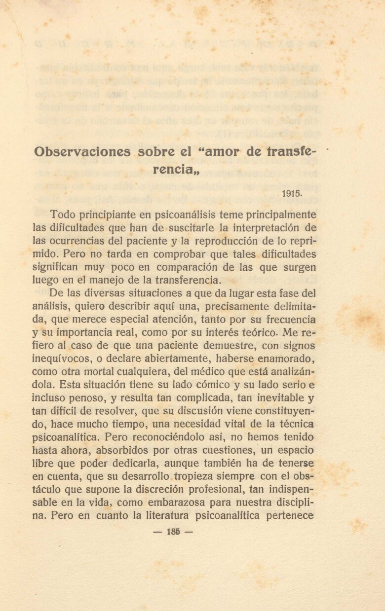 na. Pero en cuanto la literatura psicoanalitica pertenece— 185 —