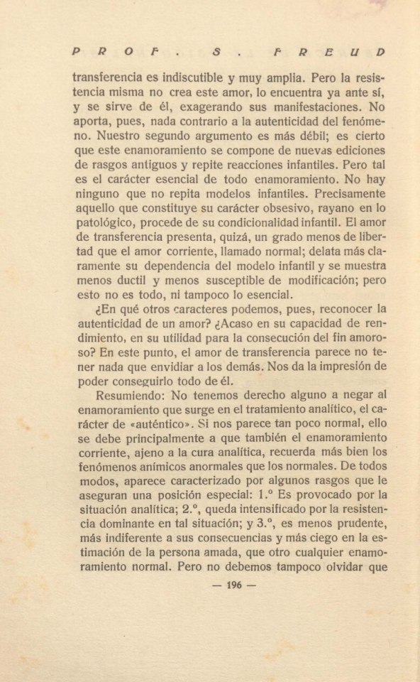 ta», segün se la denominaria fuera del anälisis. Y nunca