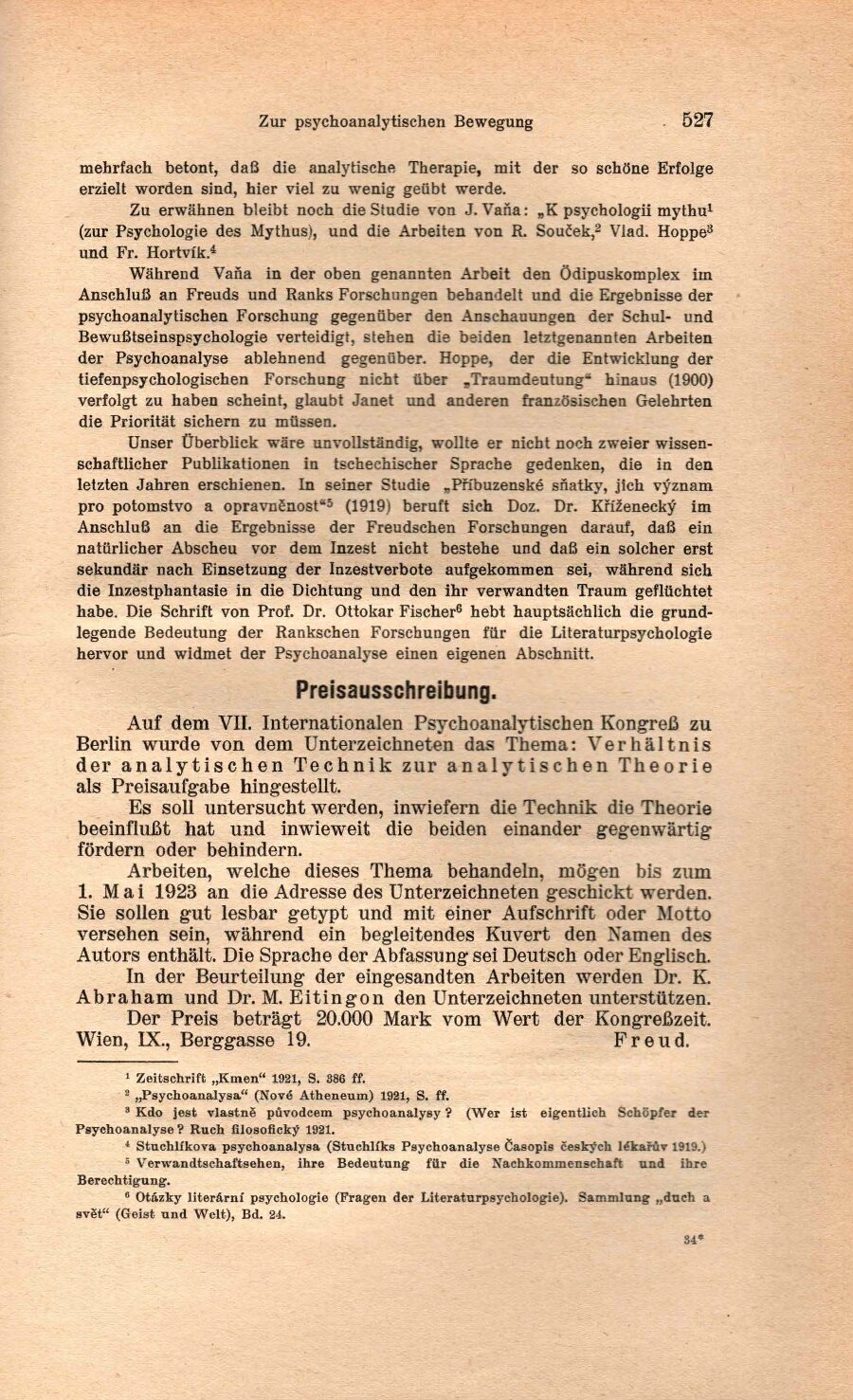 Auf dem VII. Internationalen Psychoanlytischen Kongreß zu