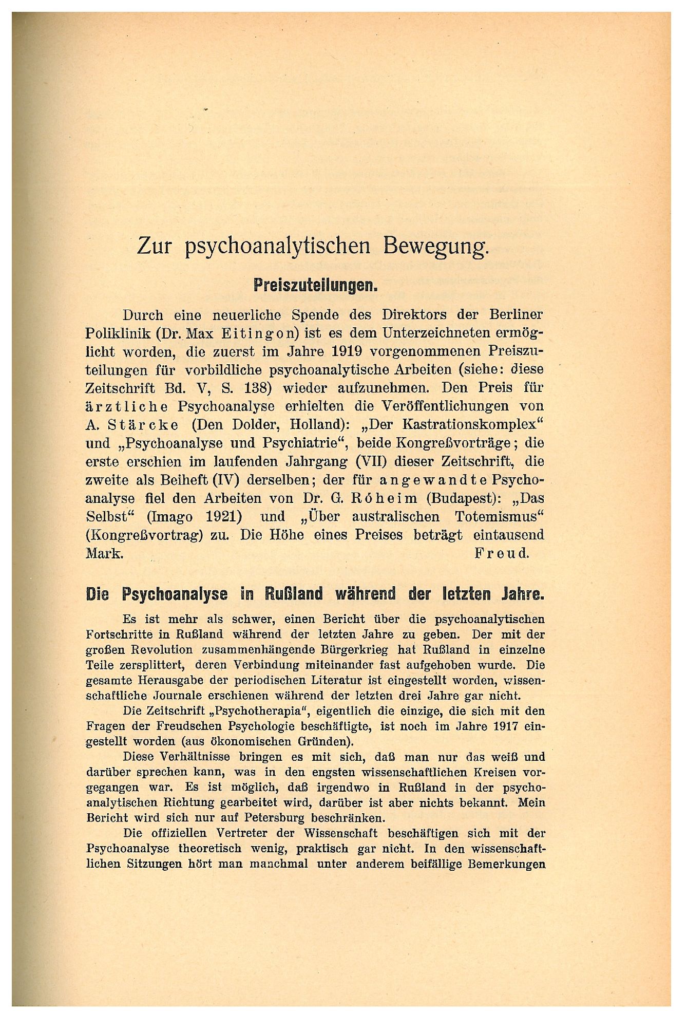 Selbst“ (Imago 1921) und „Über australischen Totemismus“