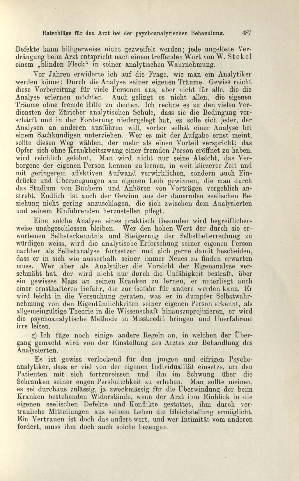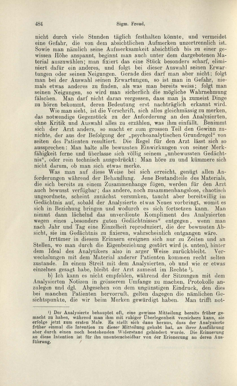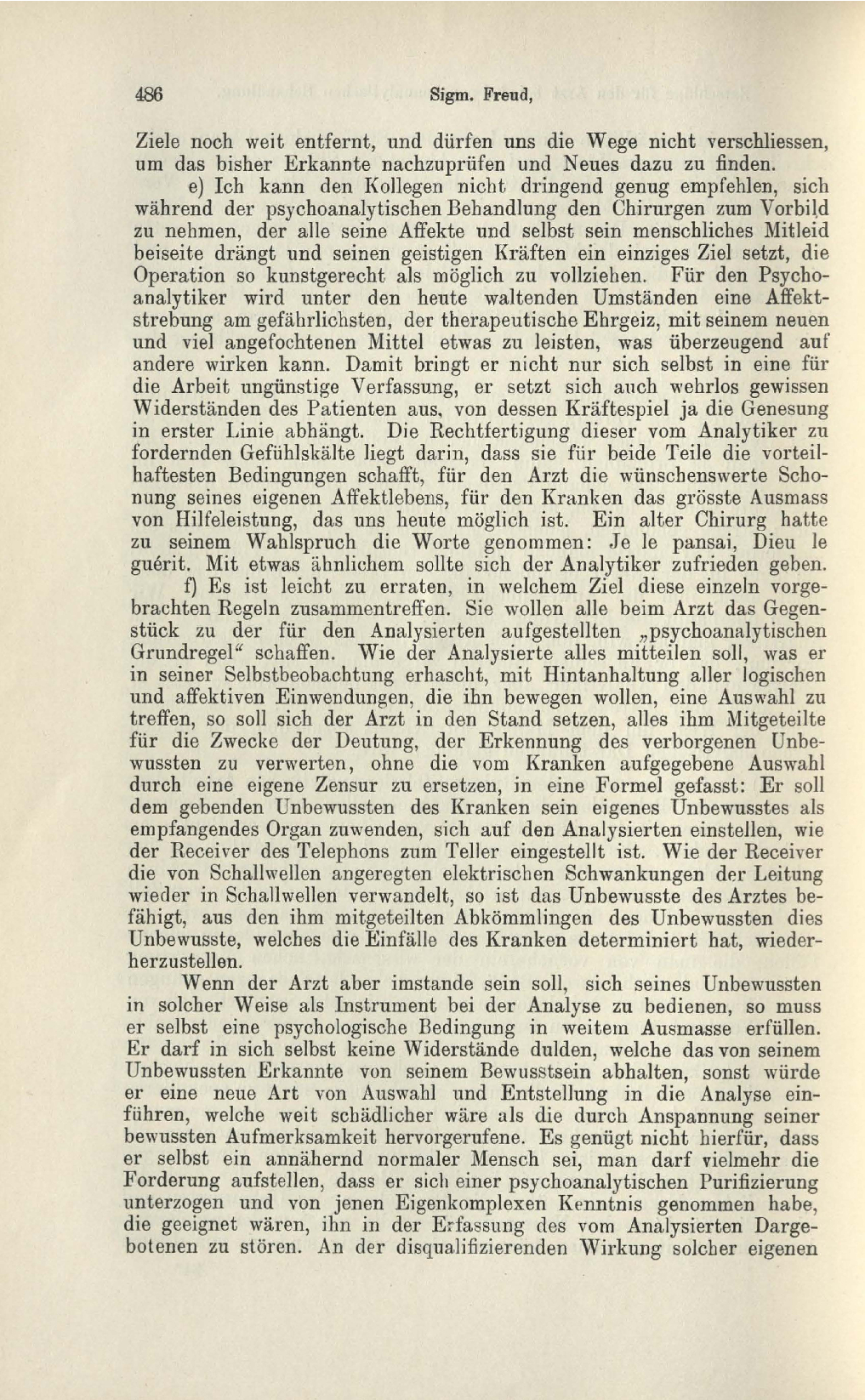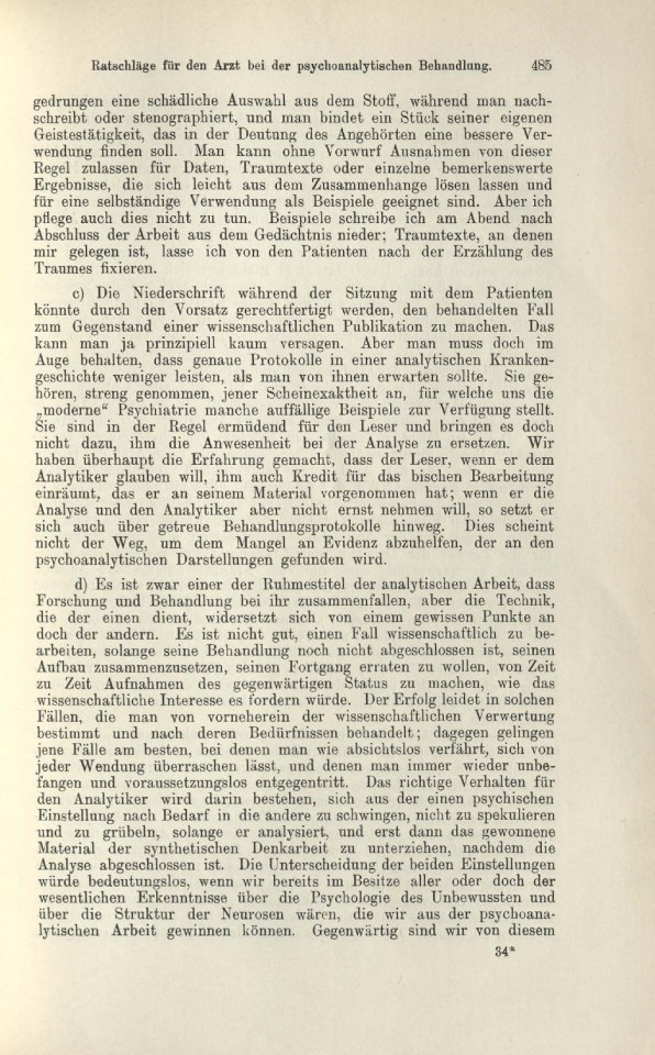 Ratschläge für den Arzt bei der psychoanalytischen Behandlung. 485