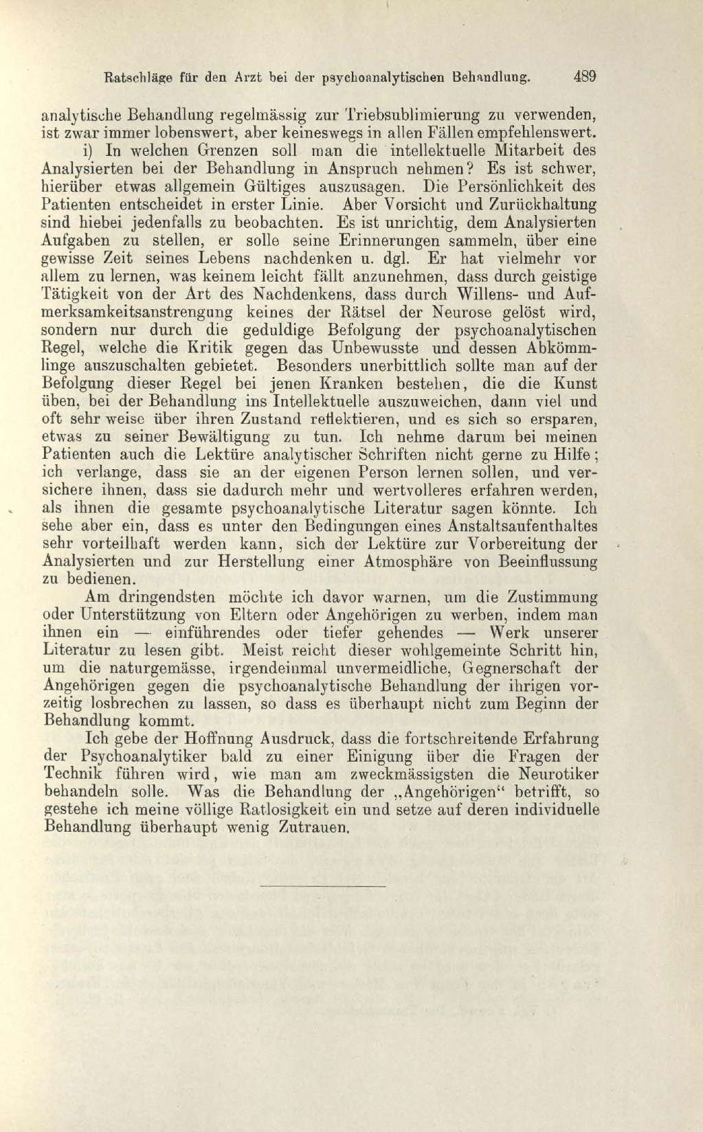 Ratschläge für den Arzt bei der psychoanalytischen Behandlung. 489