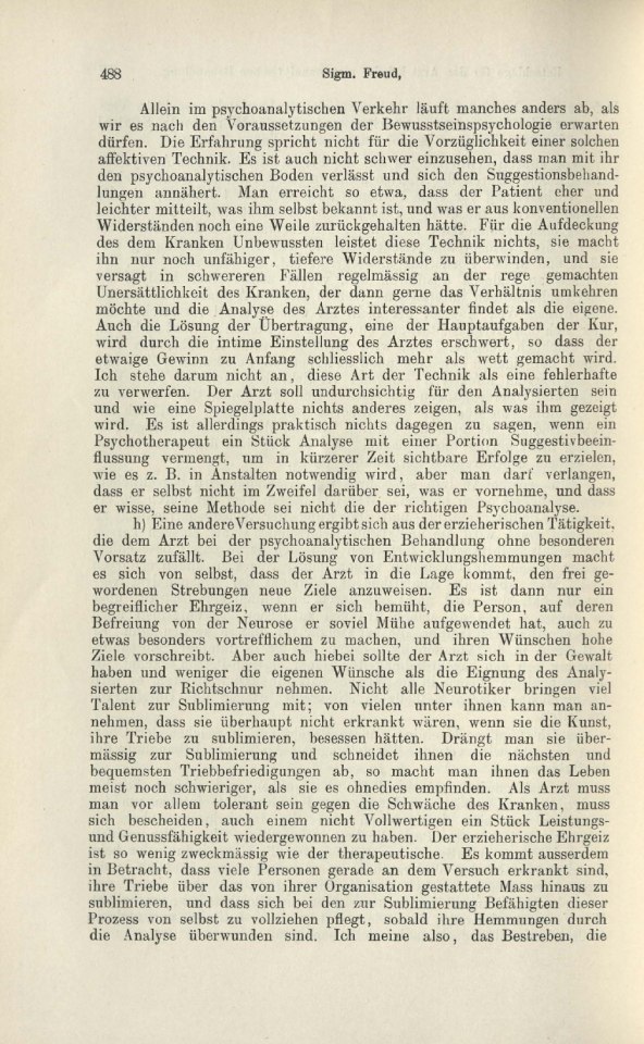 er wisse, seine Methode sei nicht die der richtigen Psychoanalyse.h) Eine andere Versuchung ergibt sich aus der erzieherischen Tätigkeit,