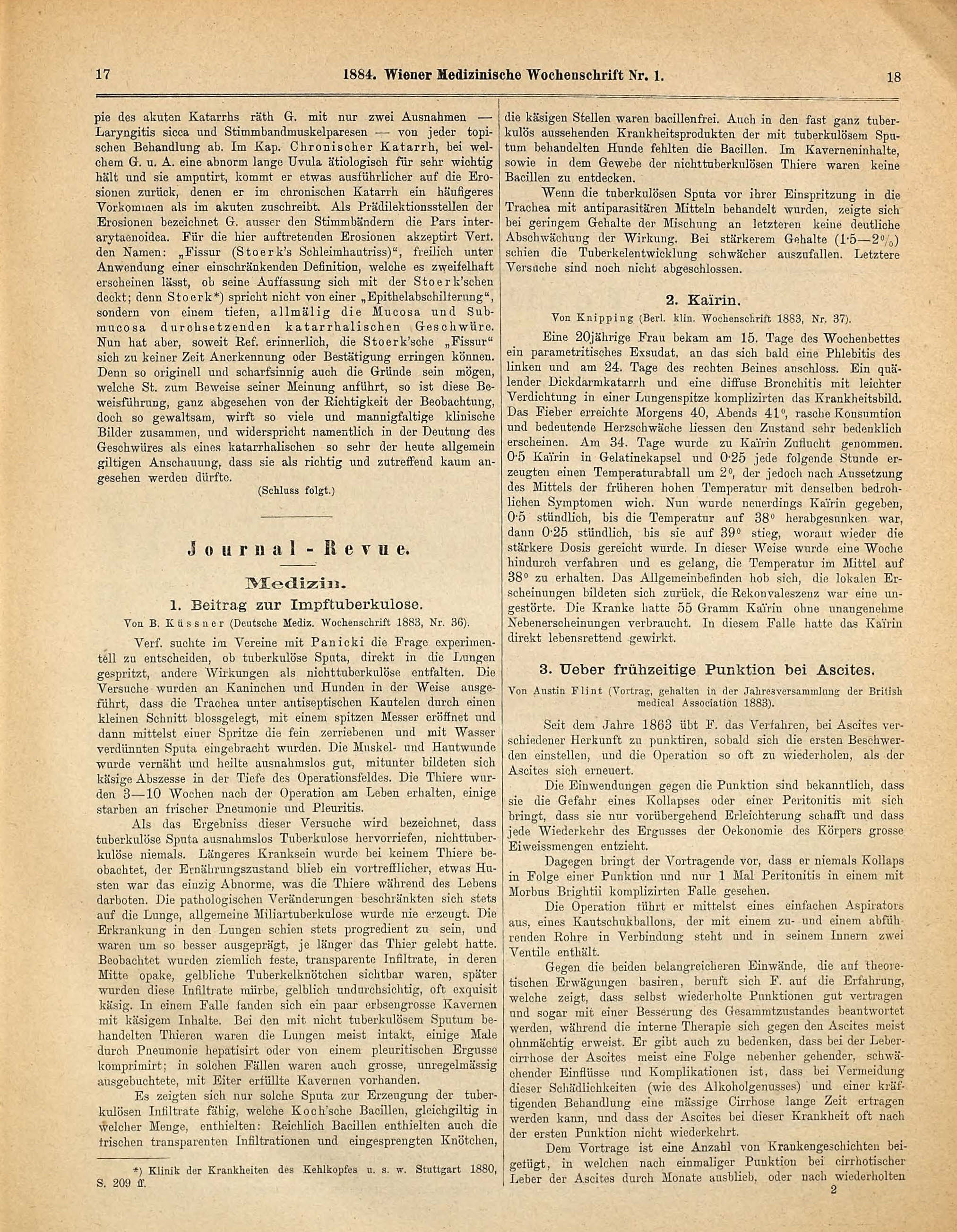Von B. K ü s s n e r (Deutsche Mediz. Wochenschrift 1883, Nr. 36).