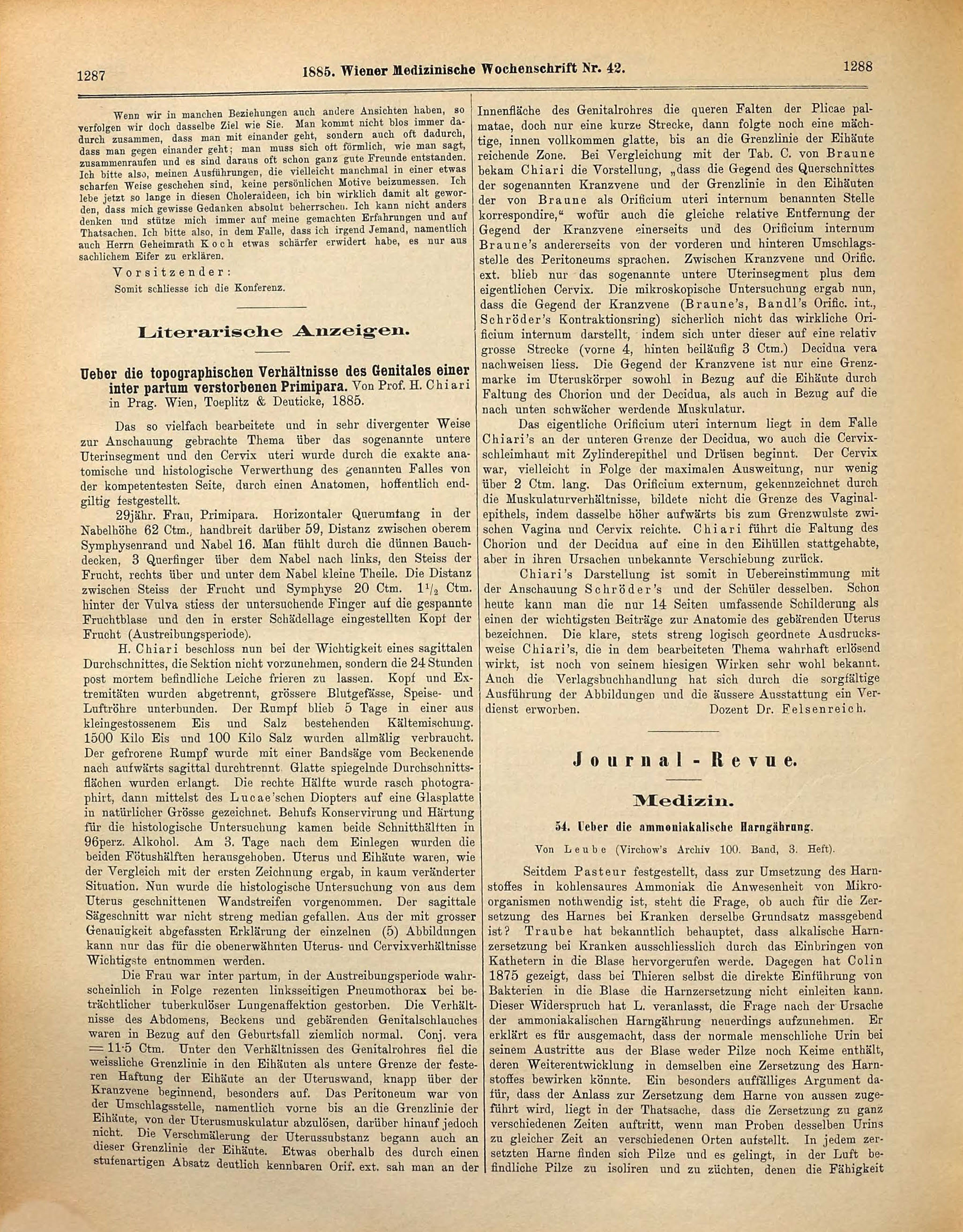 Rezension [unsigniert] von: Leube ›Über die ammoniakalische Harngährung‹ 1885-258/1885