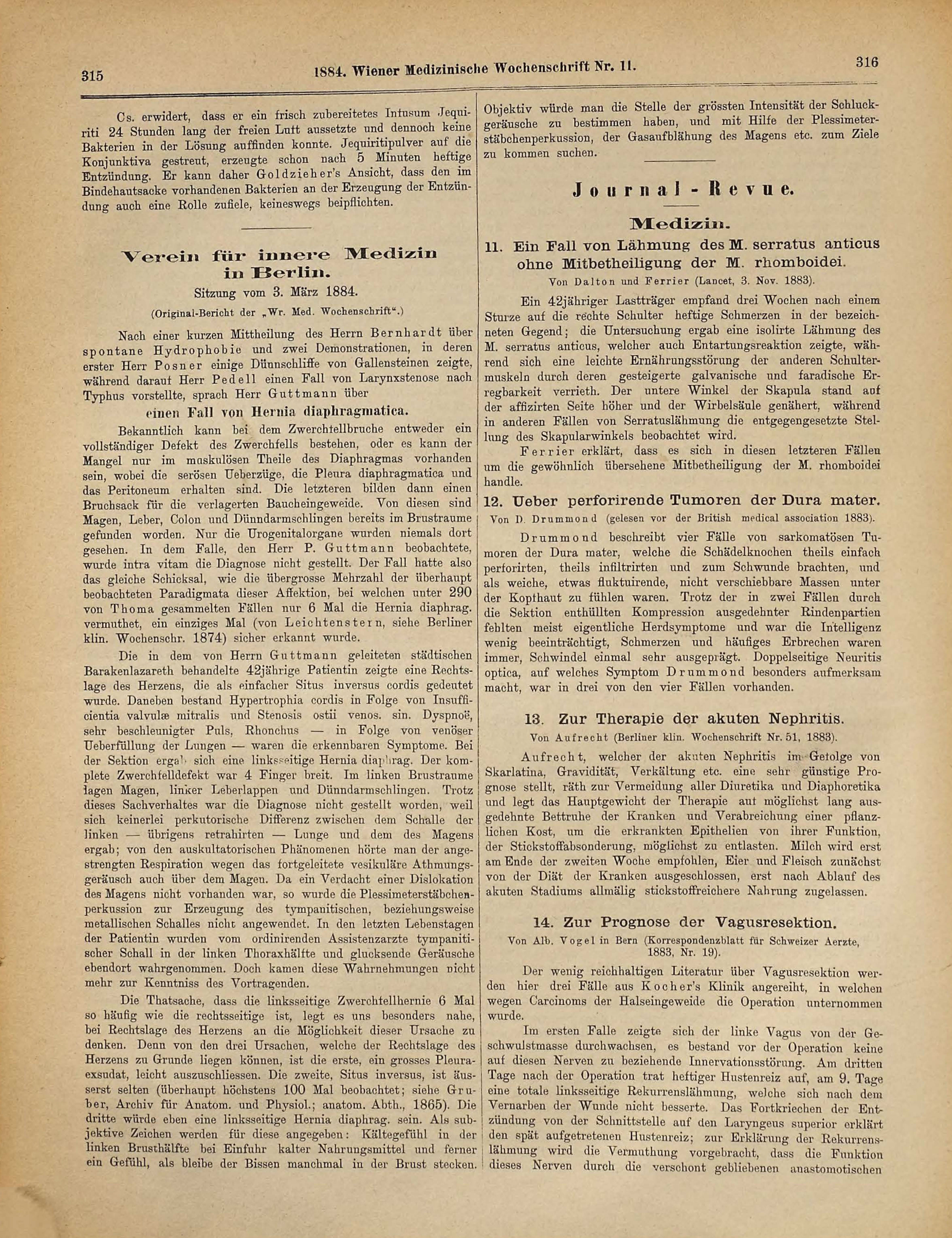 1883, Nr. 19).Der wenig reichhaltigen Literatur über Vagusresektion werden hier drei Fälle
