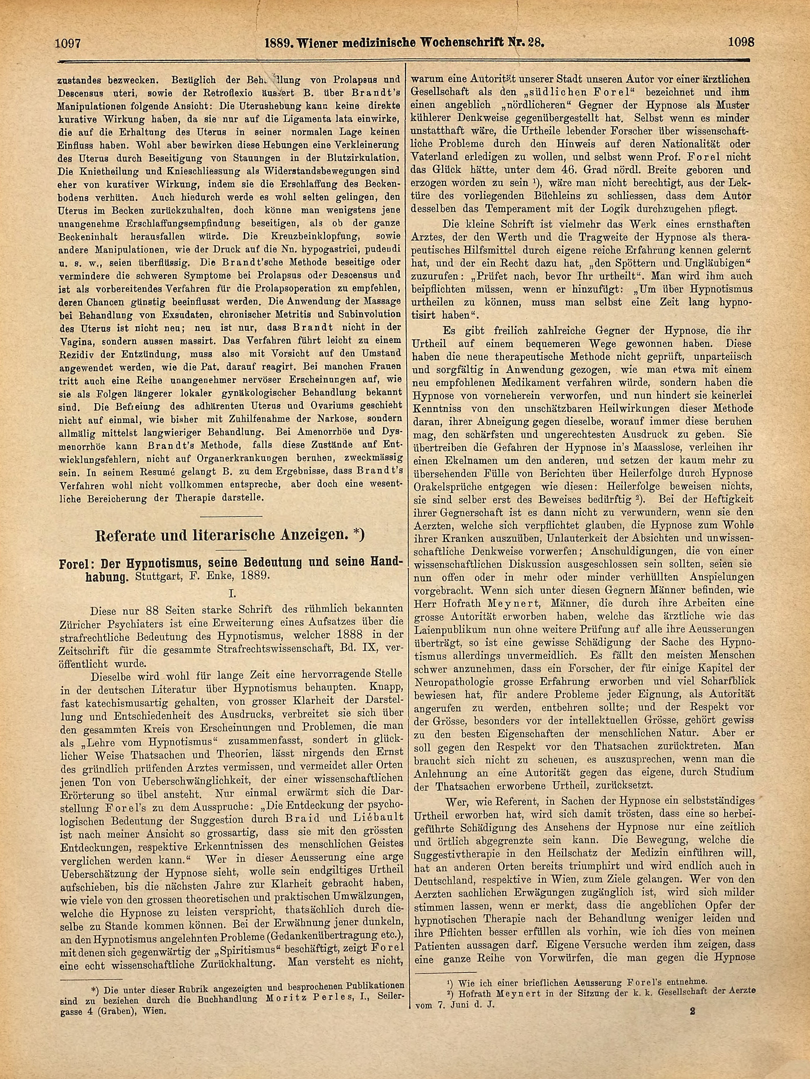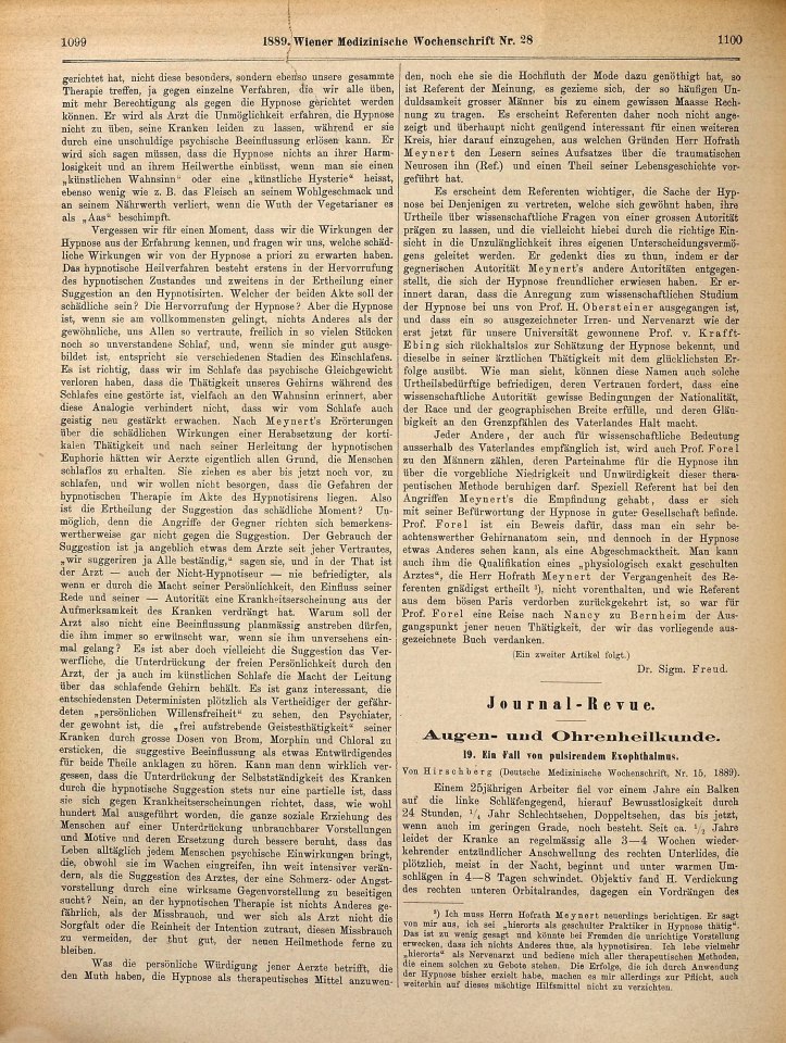 mit seiner Befirwortung der Hypnose in guter Gesellschaft betinde.