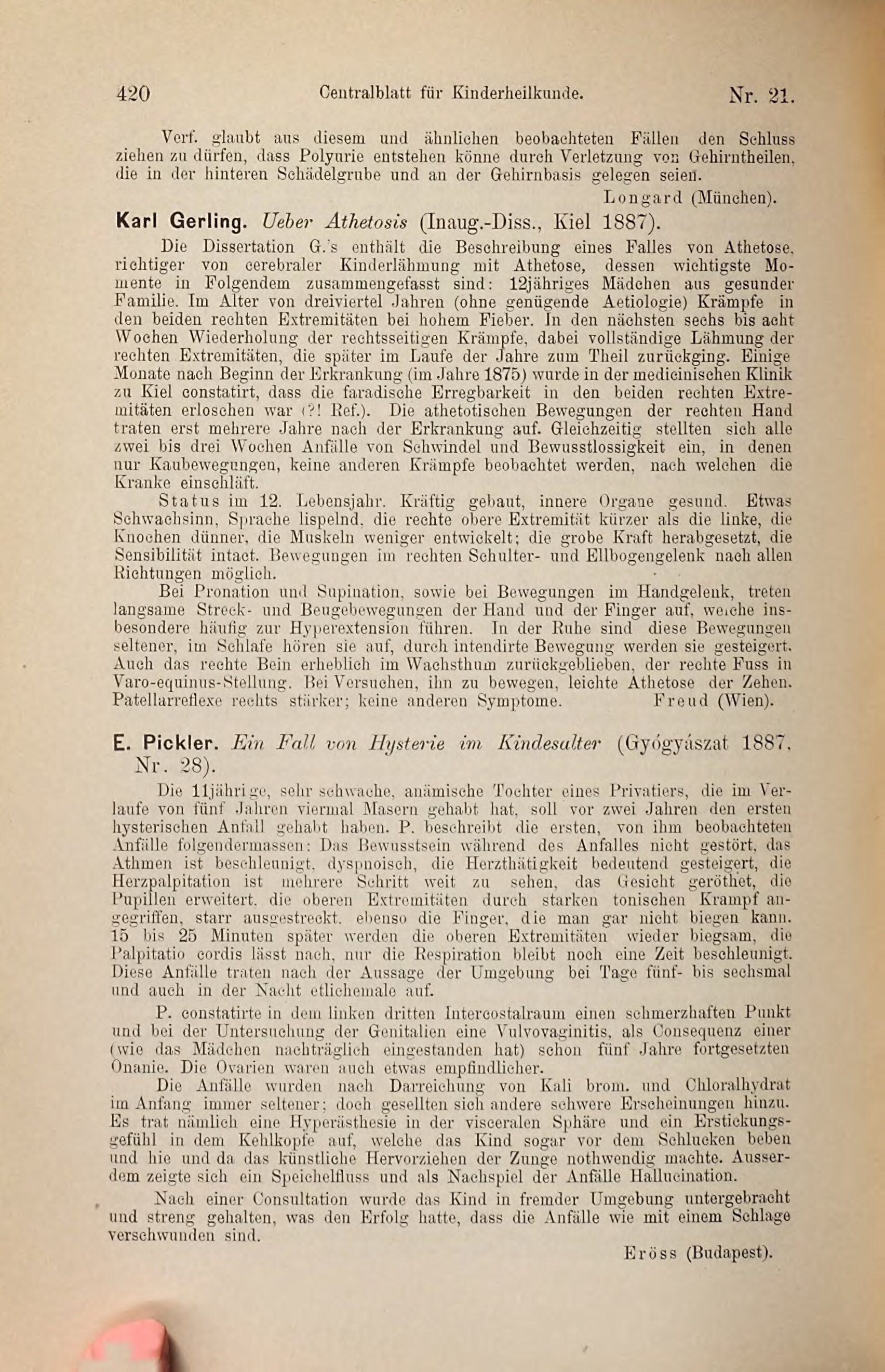 Rezension von: Gerling, Karl ›Über Athetosis‹