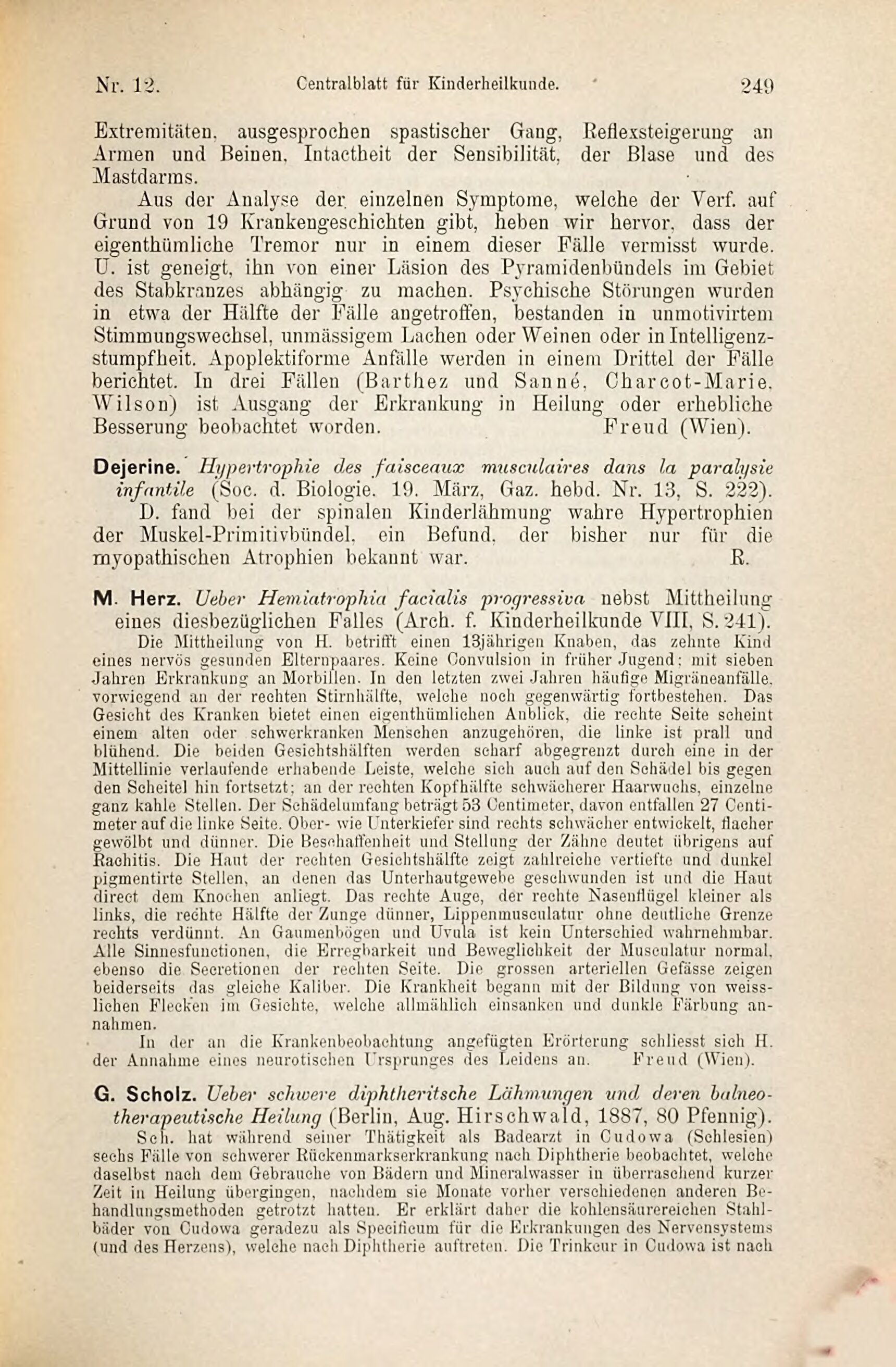 Rezension von: Herz, M[aximilian] ›Über Hemiatrophia facialis progressiva nebst Mittheilung eines diesbezüglichen Falles‹ 1887-227/1887