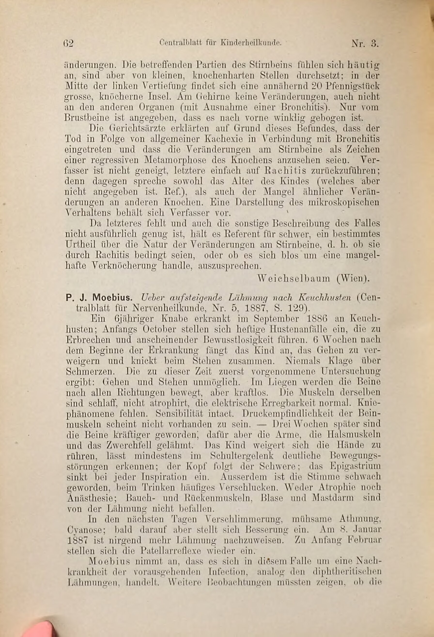P. J. Moebius. Ueber anfsteigende Lähmung nach Keuchhusten (Cen-