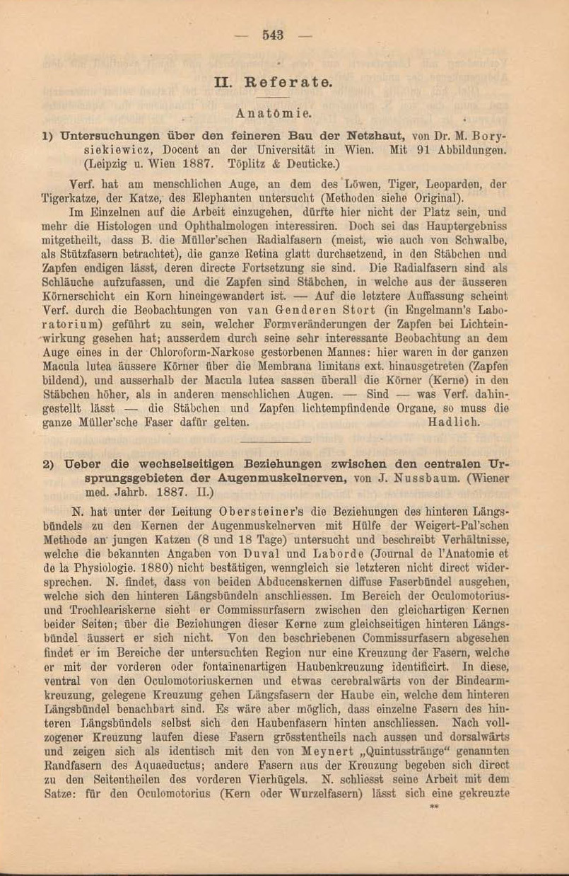 med. Jahrb. 1887. II.)N. hat unter der Leitung Obersteiner’s die Beziehungen des hinteren Längs-