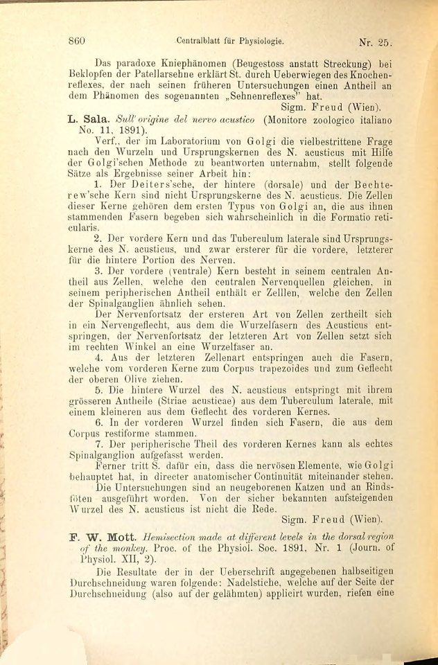 dem Phänomen des sogenannten „Sehnenreflexes“ hat. Sigm. Freud (Wien).