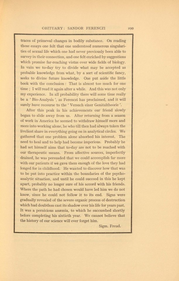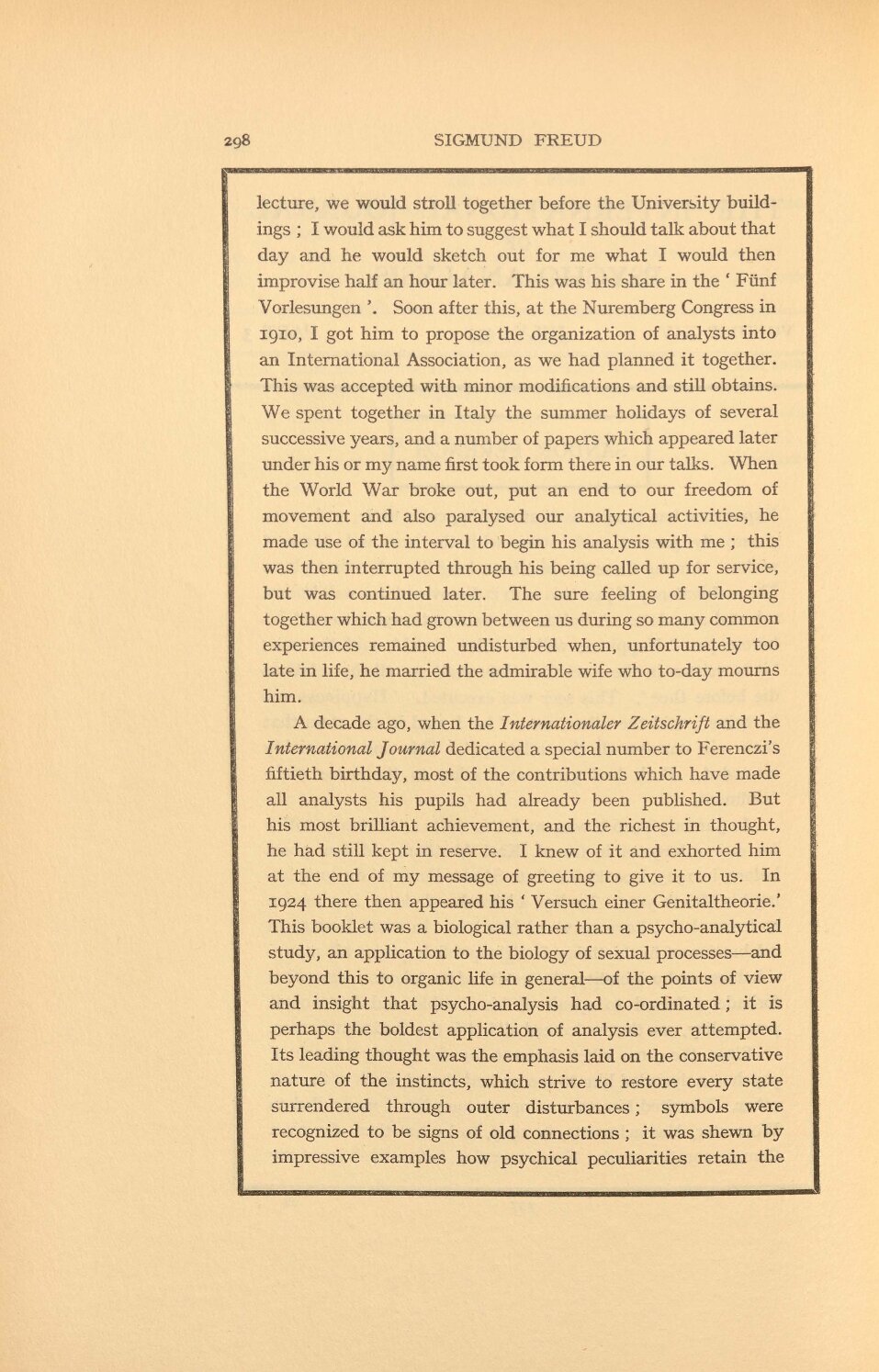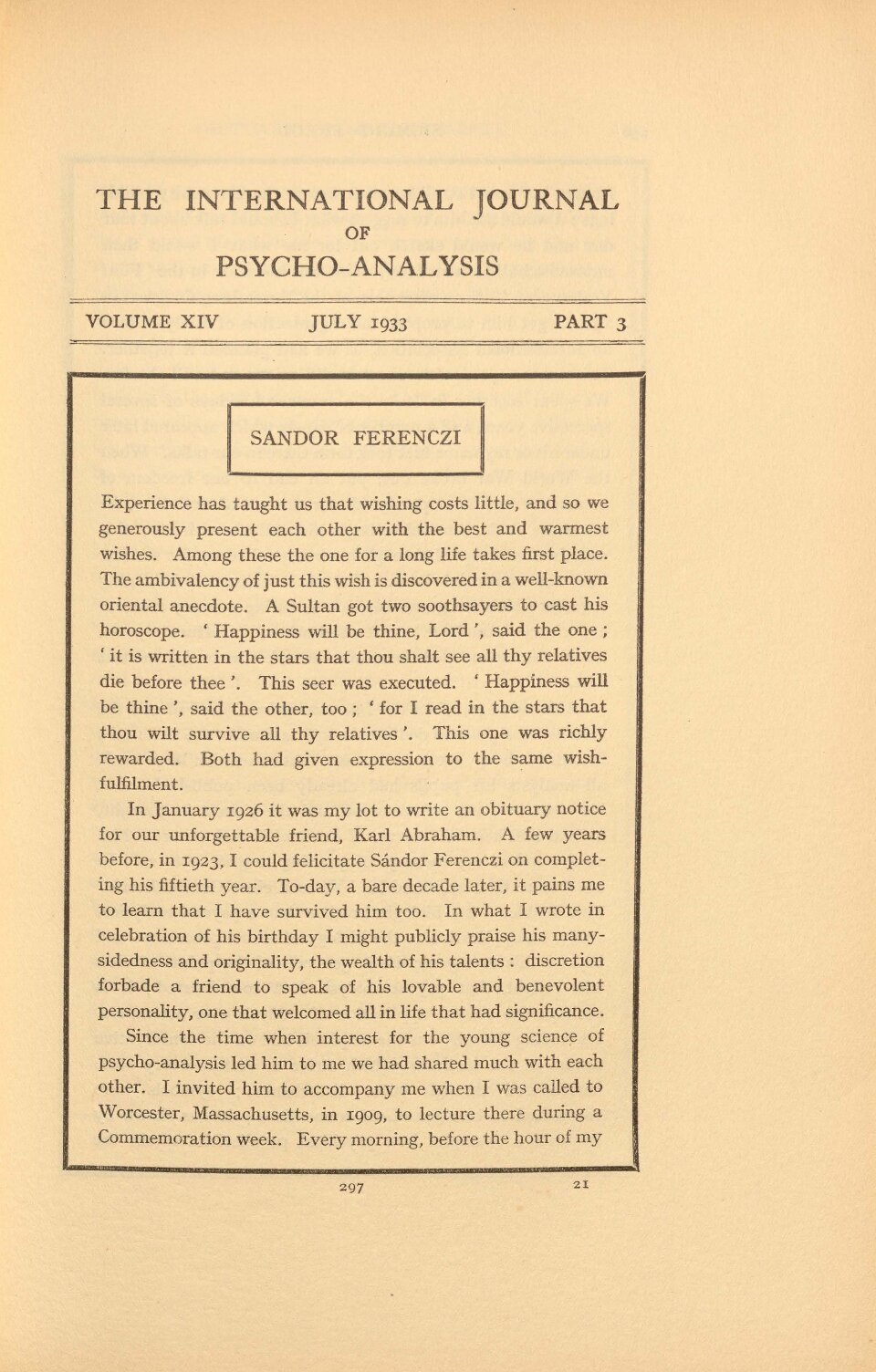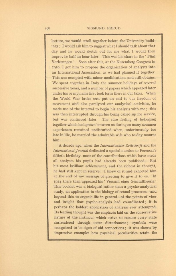 before, in 1923, I could felicitate Sändor Ferenczi on complet-