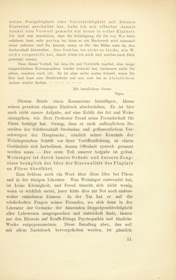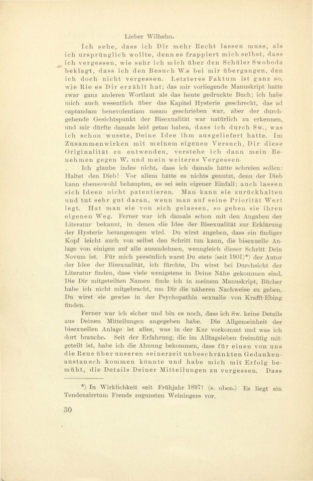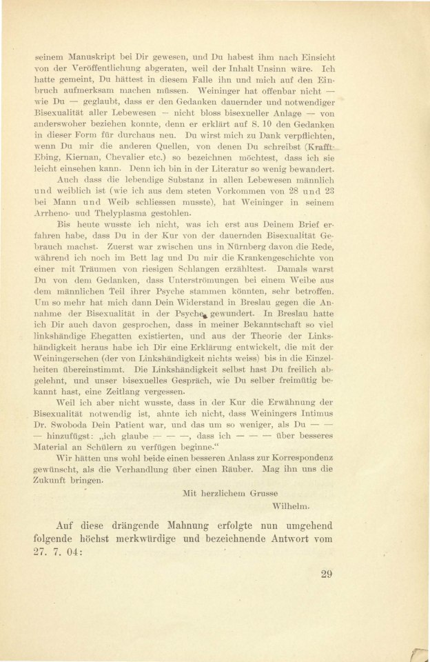 Weiningerschen Schrift vor ihrer Veröffentlichung, zu einem